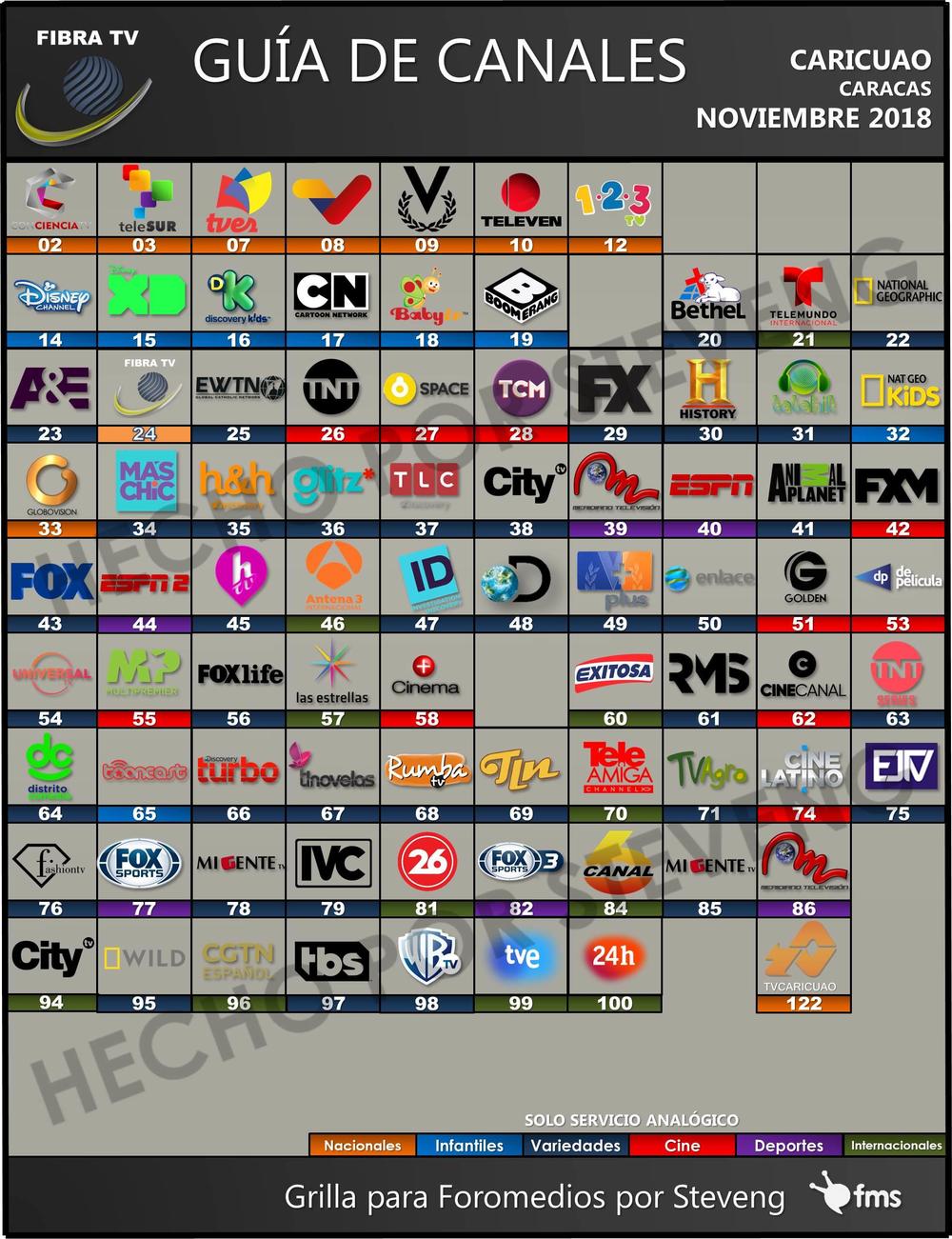 Aquí la grilla de noviembre 2018 de Fibra TV - Caracas.
