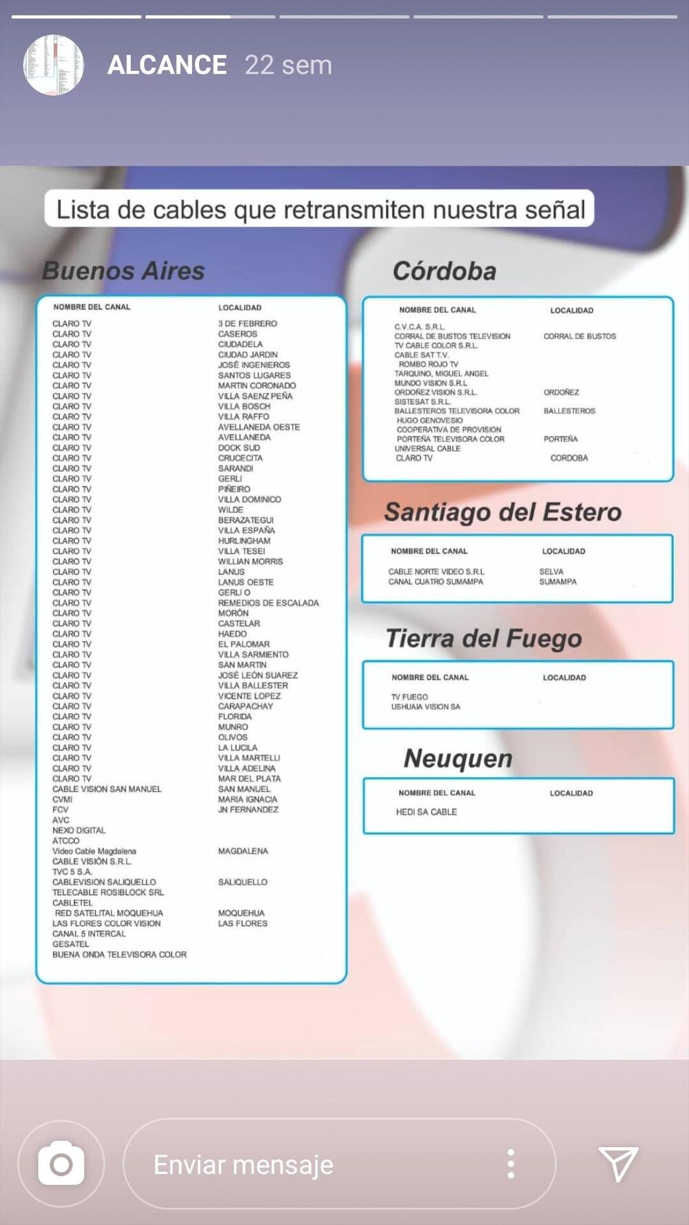 En la página de instagram de t5 corrientes, aparece una historia que dice que el canal estará en claro tv GBA