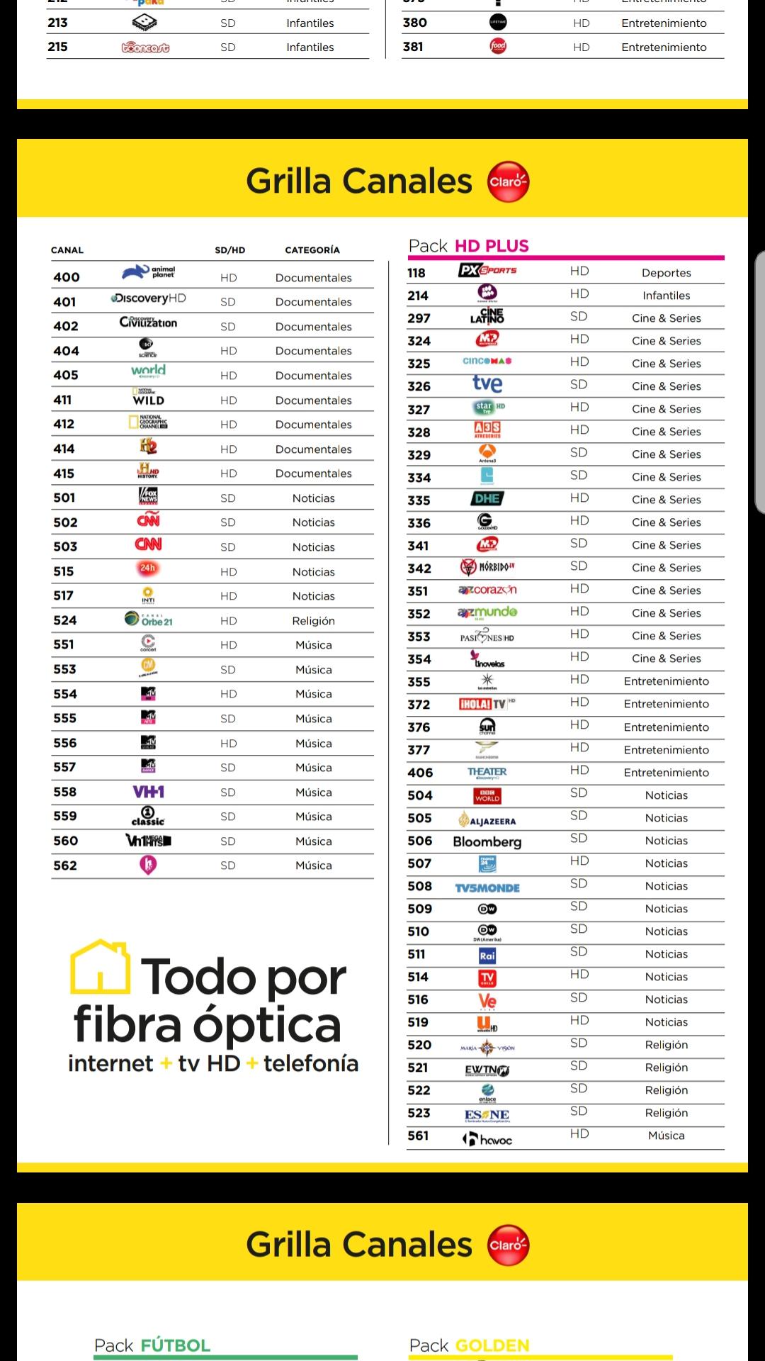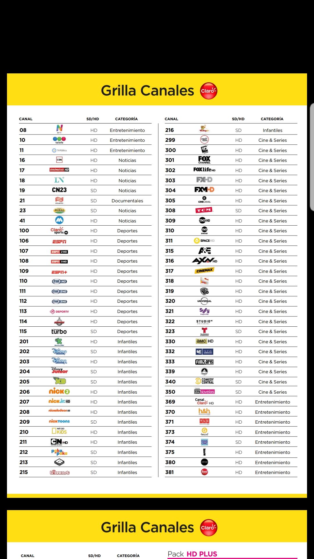 Otro Que Tambien Faltan Es Ciudad Magazine, TyC Sports, Canal (á), America Sports, Volver, Cinear, Canal 26 y Quiero Musica En SD o HD De Claro Argentina? Nos Se cuando Llega.