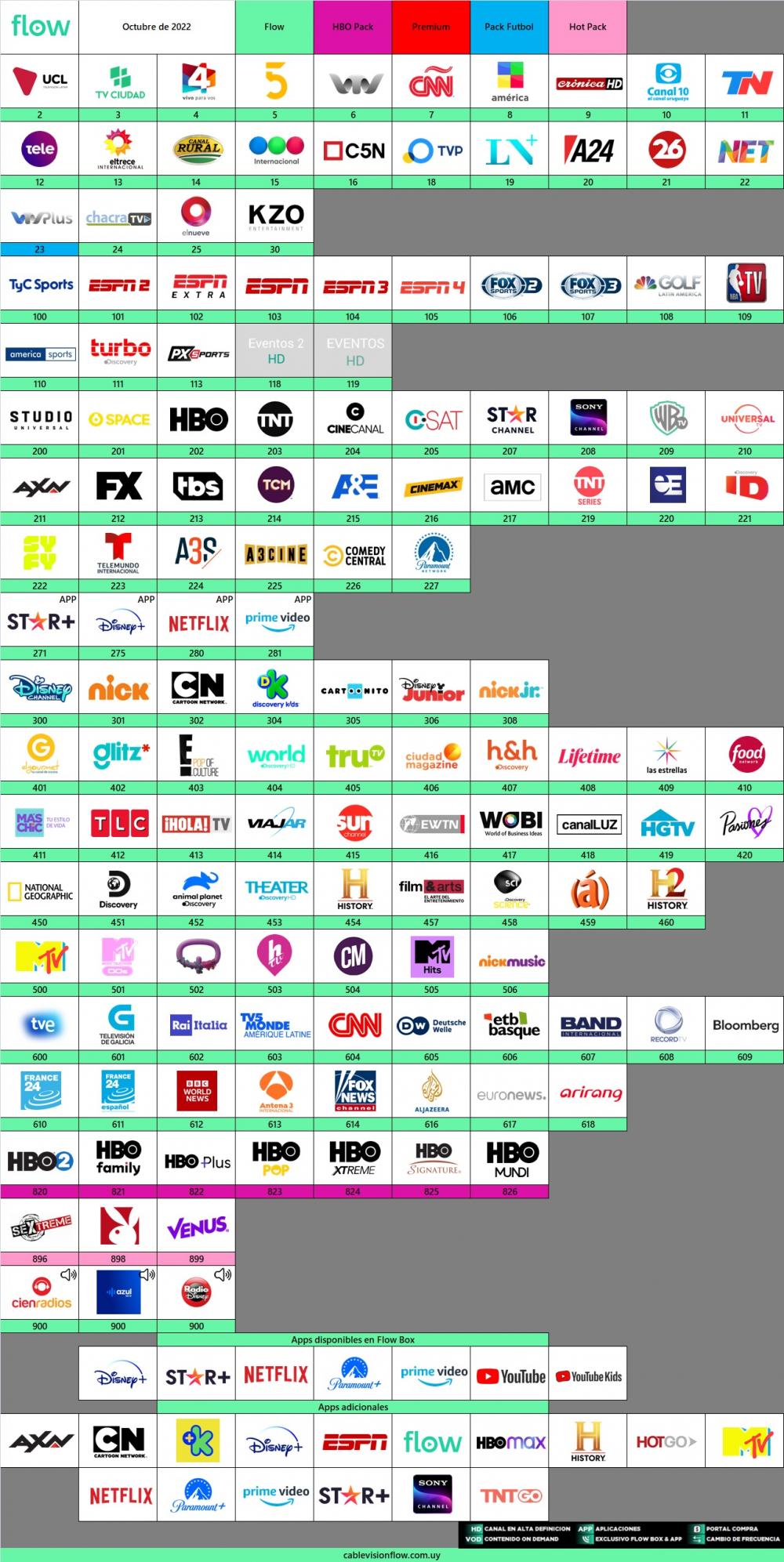 Para este mes, Flow Uruguay podra incorporar las siguientes señales: