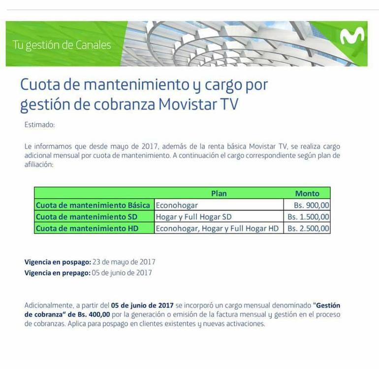 Cuotas de mantenimiento (prepago y pospago) y ahora cuota por gestión de cobranza (solo pospago)