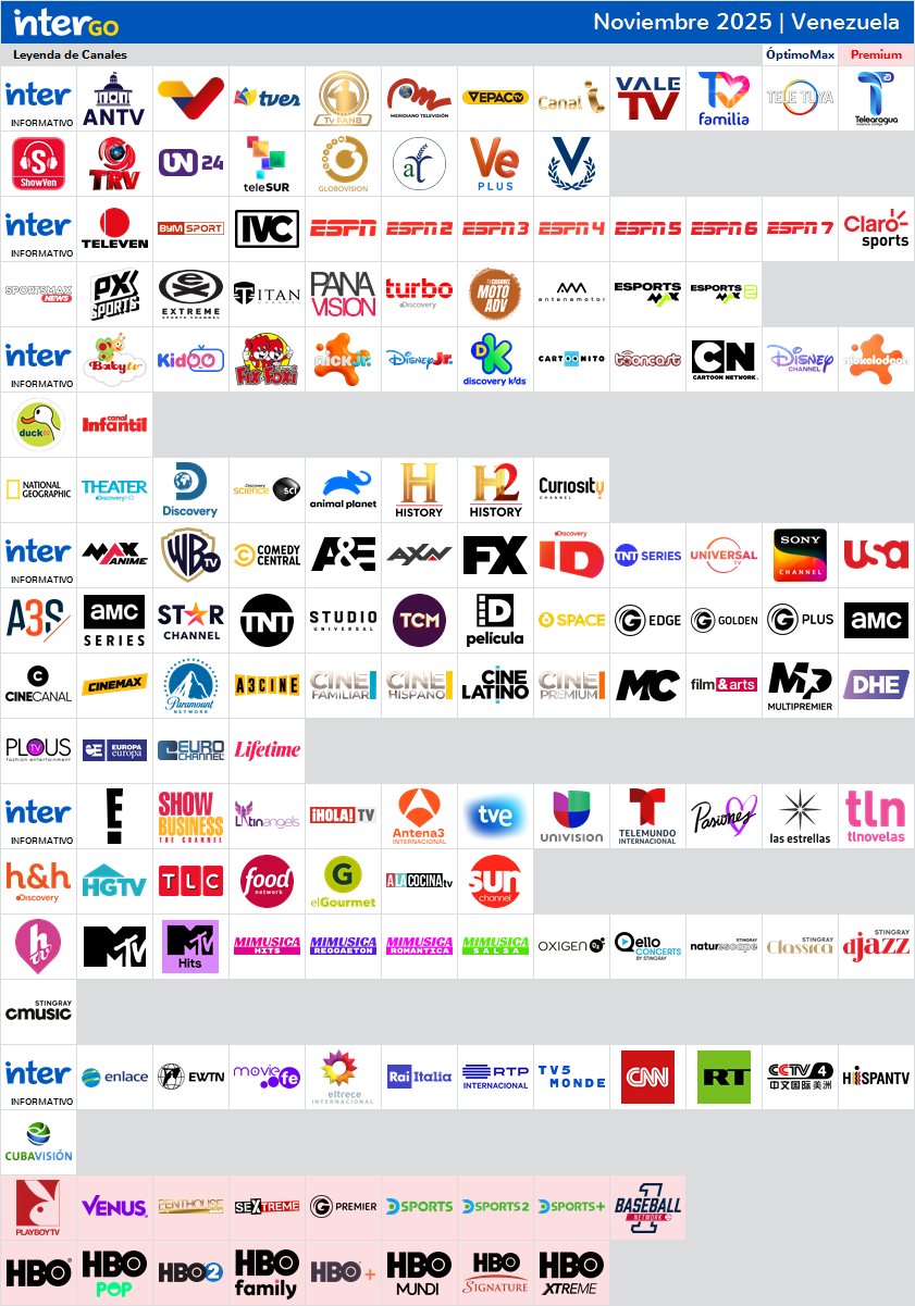 Esta es la grilla actual de la app OTT InterGo, con 144 canales básicos “únicos” más respectivos canales premium, y lo de “únicos” es porque este mes ocurrió un reordenamiento de la grilla por defecto, y se agregaron 5 duplicados del Canal Informativo de Inter haciendo el mismo efecto de “mosaico” para abrir una sección por género, además del lanzamiento de AMC Series, ingresó el canal FAST de deportes extremos Panavisión reemplazando a Fuel TV. En los últimos dos meses han ingresado canales como Canal Infantil (de LEG), eSports Max 2 o HispanTV.