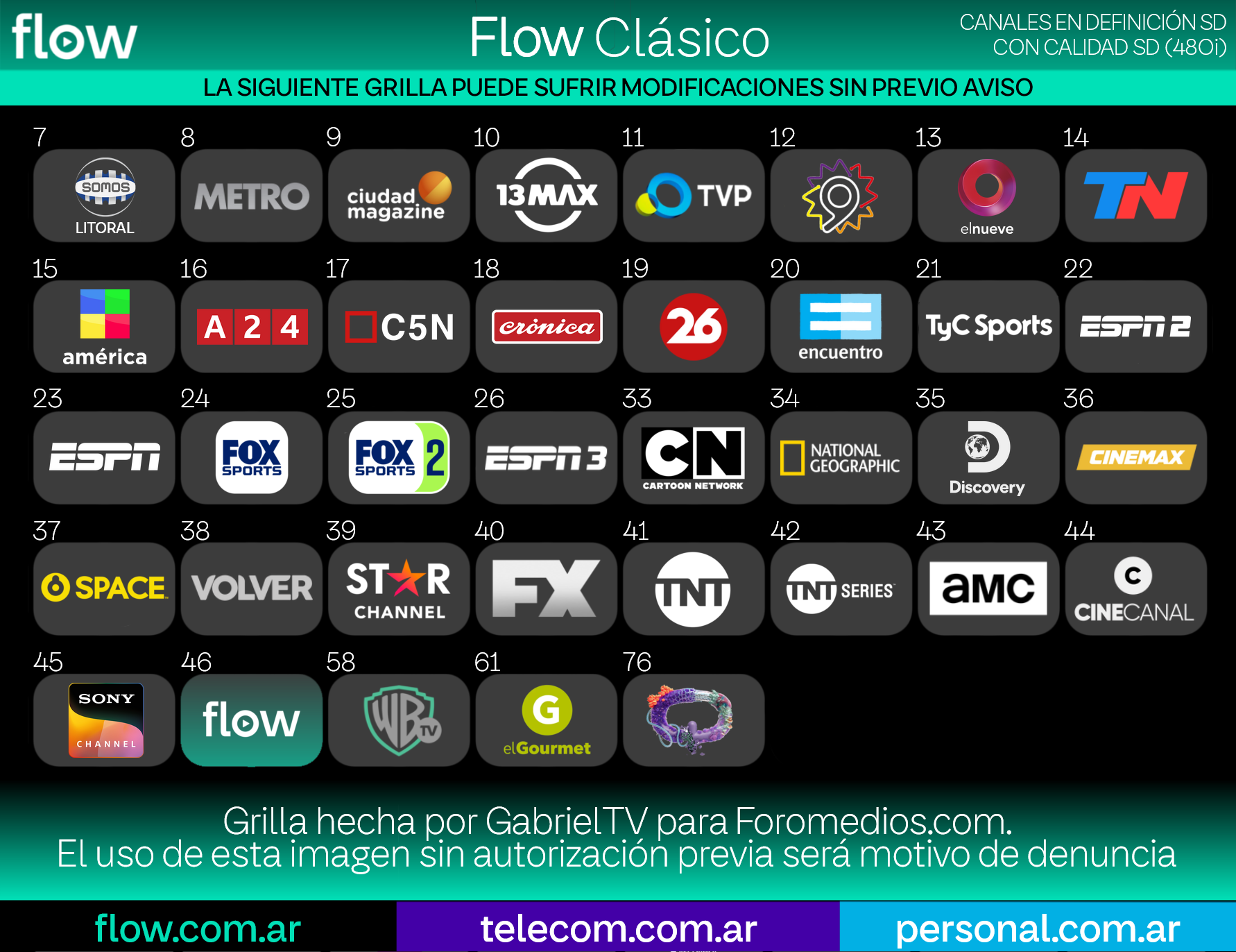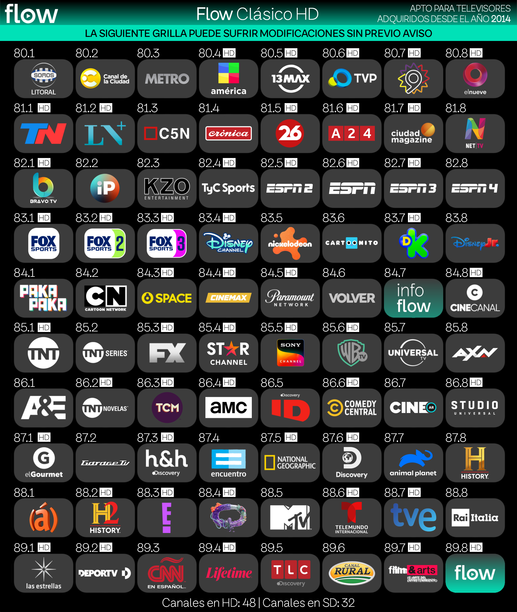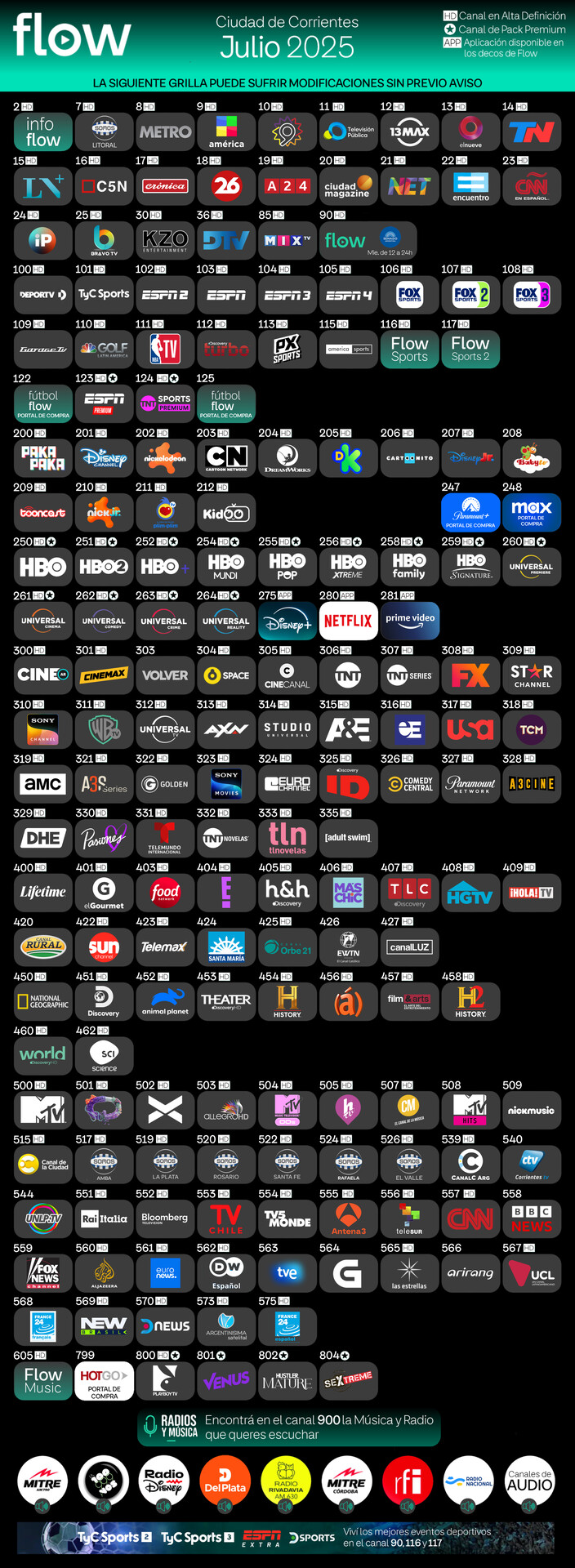 en esta grilla se incluyen los canales disponibles en Flow para Corrientes. Argentina