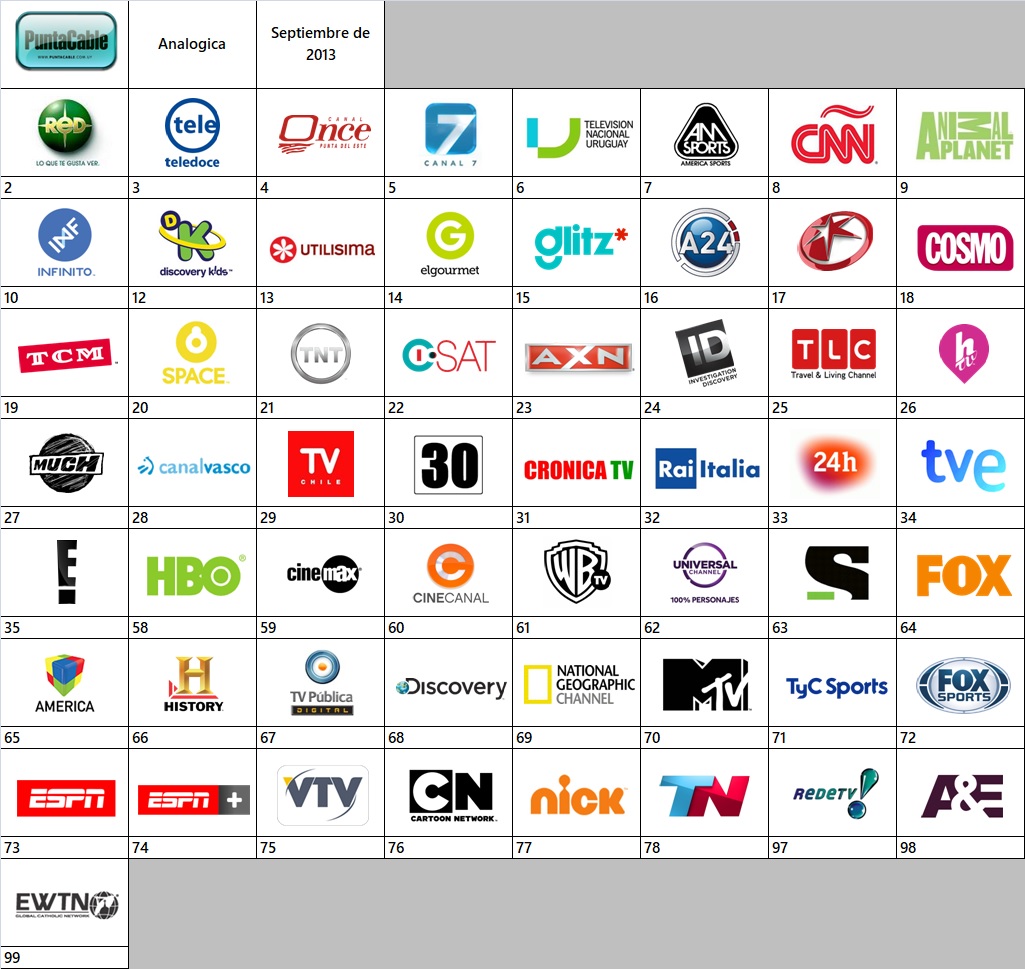 Grilla de canales PuntaCable Analogico - Septiembre de 2013