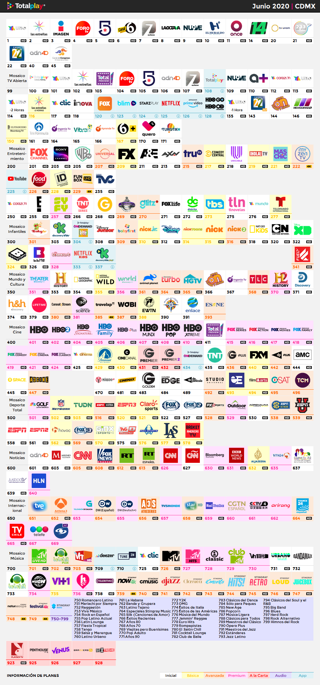 Por ocasión excepcional les traigo la grilla de Totalplay para la Ciudad de México, la gran mayoría de la grilla ya se encuentra en HD con algunos canales en SD y otros con 4K/UHD/HDR, etc.