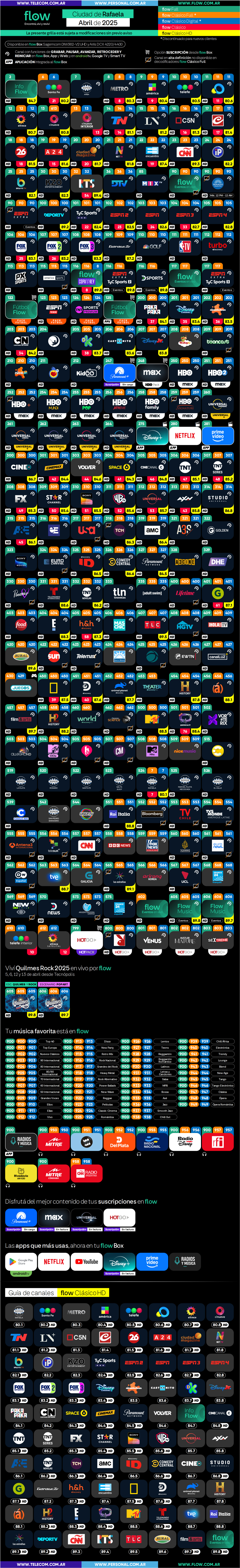 Después del Lollapalooza 2025, las señales adicionales de **Flow Music** en los canales 607 y 608 fueron retiradas.