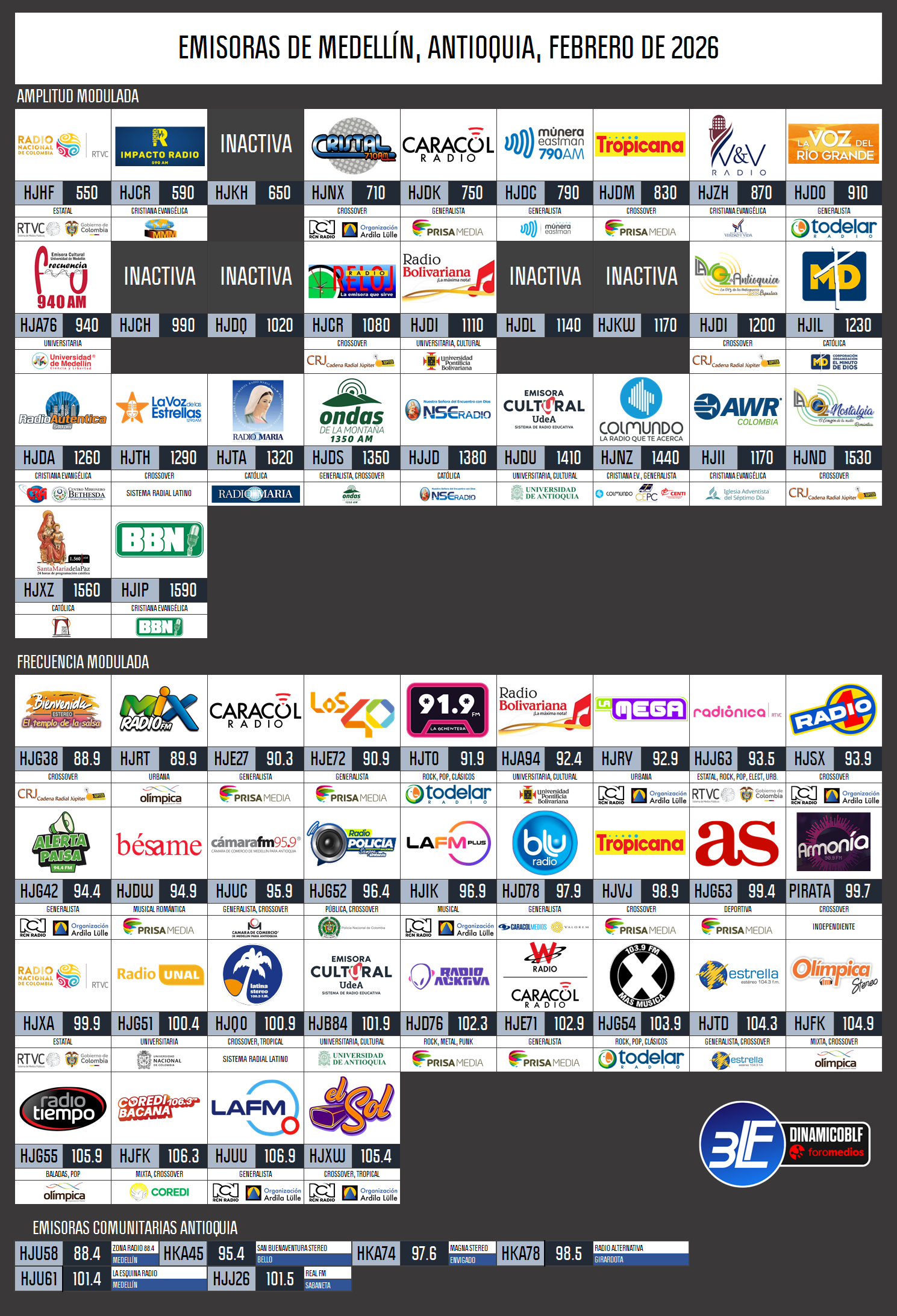Grilla Radial AM Y FM Medellín, Antioquia - Febrero de 2026