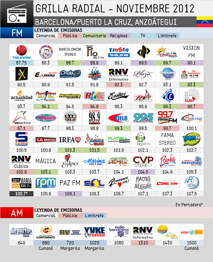 Grilla Radial Barcelona/Puerto La Cruz - Noviembre 2012