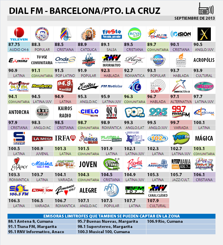 Ahora me di cuenta que Nivel tiene circuito, que empezó a mediados de 2011 como prueba en Maturín. Y la 102.1 tiene relación con Dinámica 89.9? digo solo por similitud del logo. Hay mucha variedad por allá. Lastima en mi ciudad. Debido un montón de emisoras cristianas que es mejor tener una alianza para cada iglesia para una emisora y otras que crea conflicto con otra y por las emisoras cerradas por Conatel como Venezuela Olímpica 97.9 FM, Caicareña 100.5 FM (Limítrofe) , Única 104.9 FM, Líder 100.7 FM (que varios meses cerraron acuerdos para aparecer al aire) Vip 93.1, Monumental 106.1 y Avanzadora 91.3. Por motivos políticos :confundido: