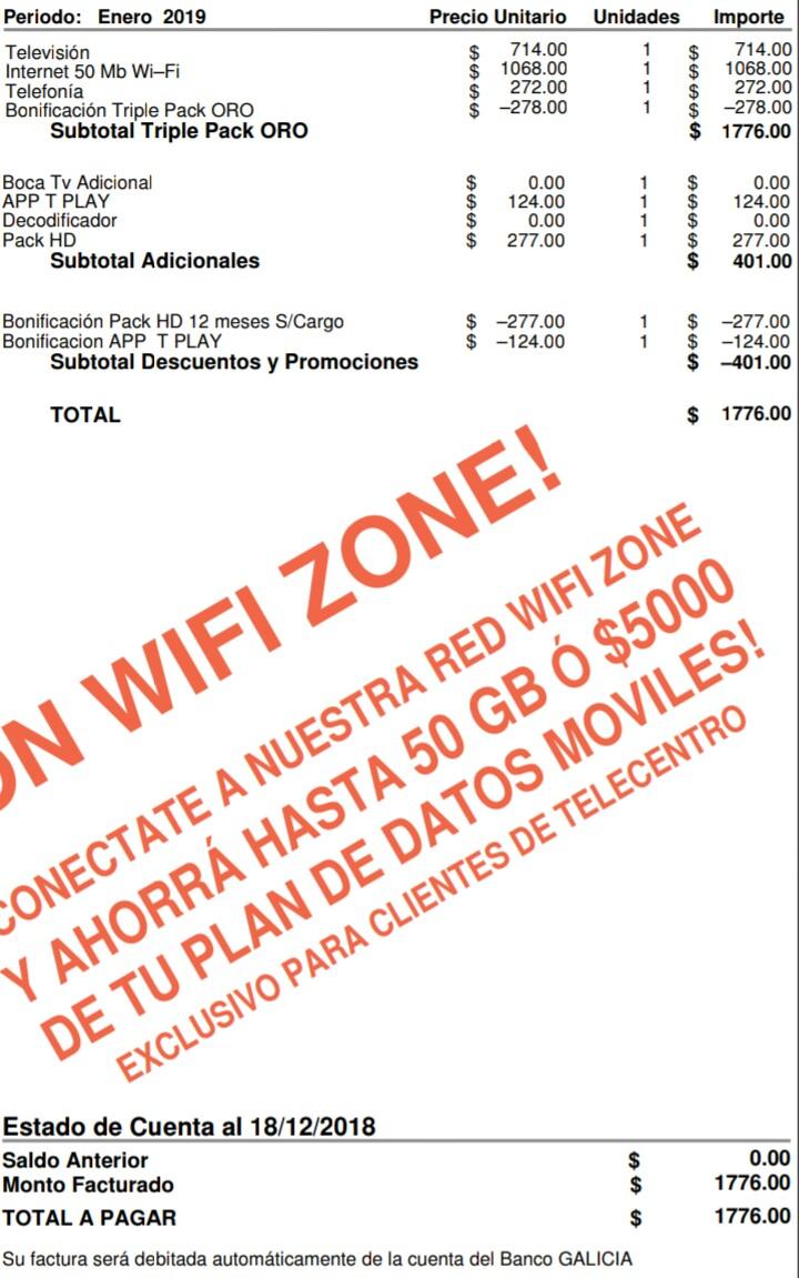 Para los que no saben, en la factura de enero va a venir un incremento en el abono básico va a costar 1776$, dado que no se aviso del aumento pueden comunicarse atención al cliente, o por chat en la página de telecentro y pedir un reajuste para conservar el abono 2 meses más al mismo precio u obtener una bonificacion dependiendo el operador que les toque.