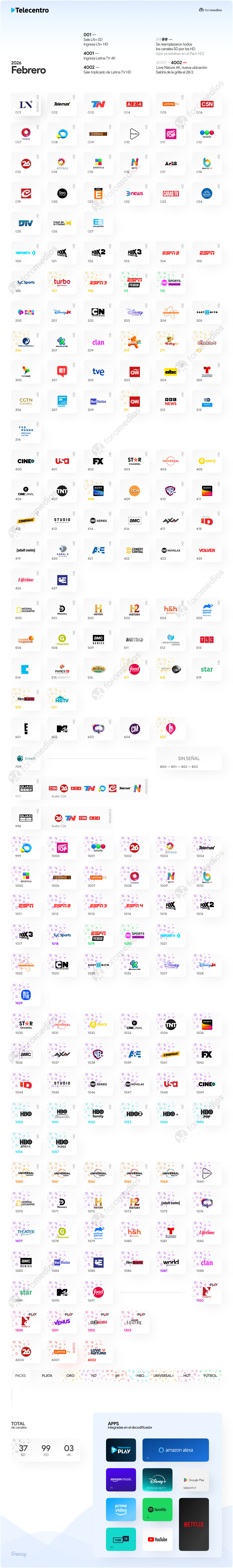 - Los únicos canales que faltan son TyC Sports (106) y creo que Playboy TV (1100) (no tengo el pack para confirmar)