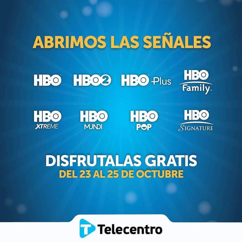 Del 23 al 25 de Octubre, Telecentro va a liberar todos los canales de HBO