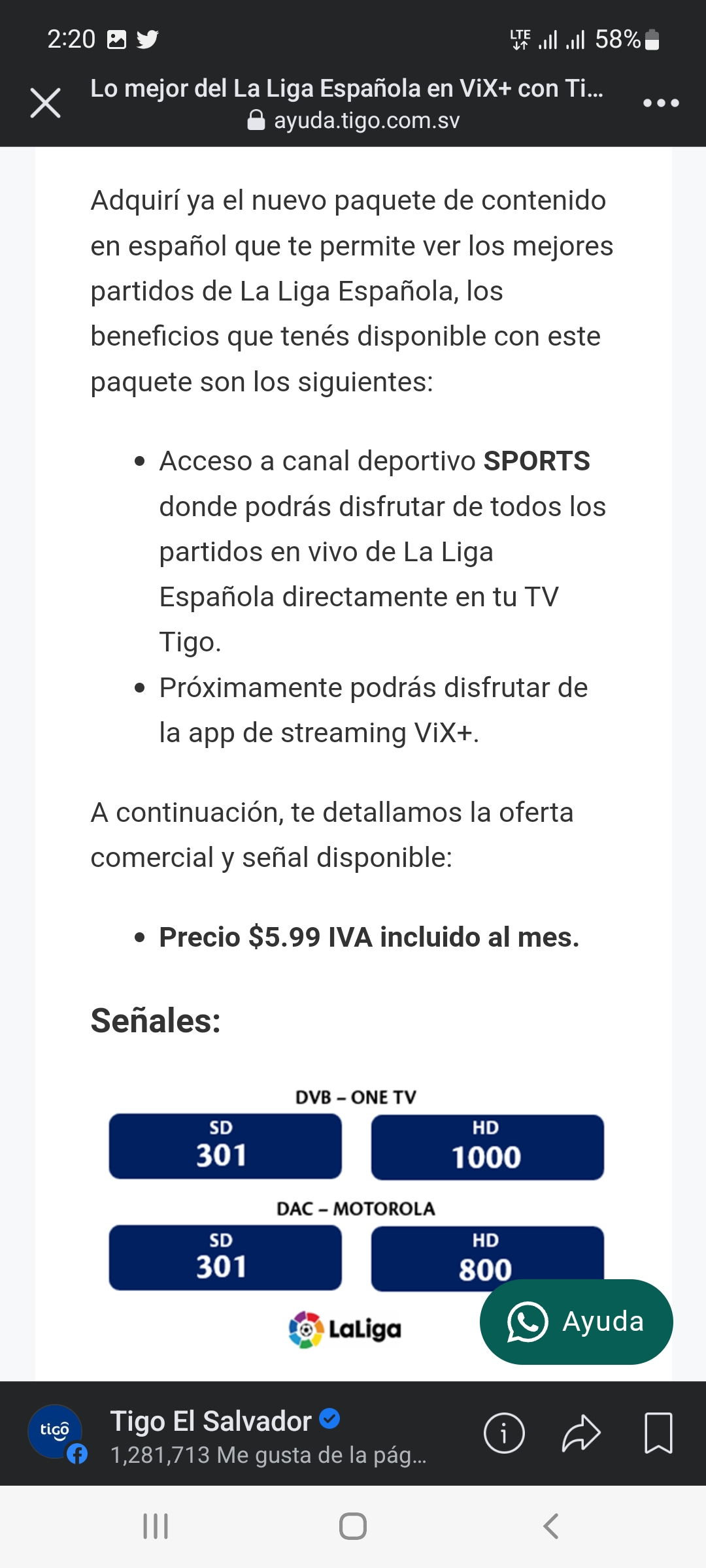 Ingresa Tigo Sports 2, canal que por el momento se encuentra bloqueado y sin programación ( 301 / 1000 HD )