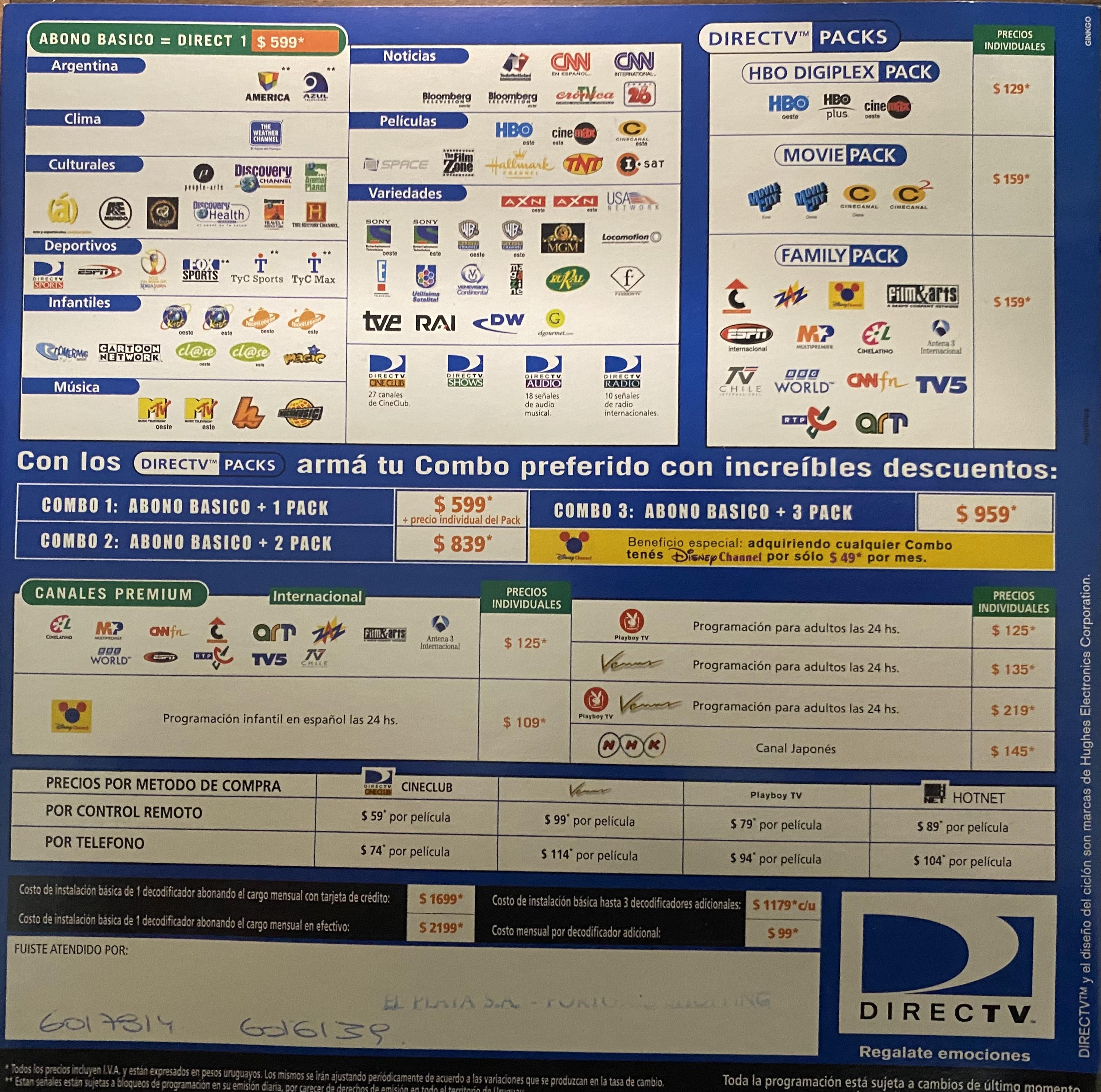 Grilla y Revista DIRECTV Uruguay - julio 2002