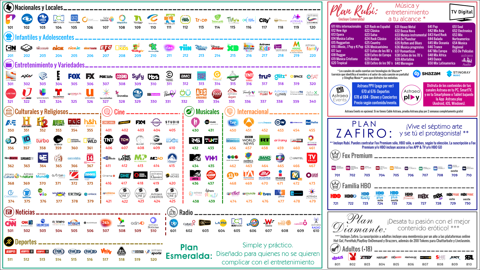 Sin otro particular, aquí las grillas de Astraea para la TV Digital y HD
