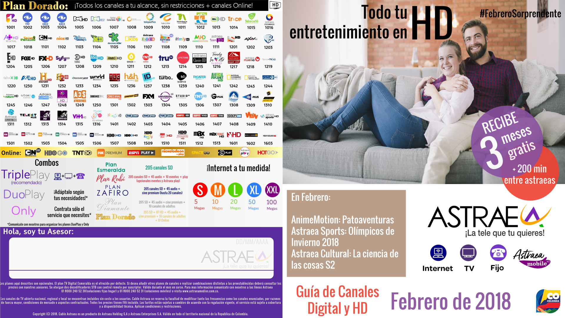 Cambios de logotipos (Win Sports, dePelicula, Telehit, Golden, TNT, TNT Series, Canal institucional, Telecafé). Sin novedad por parte de otros operadores- Se pospone el lanzamiento de Astraea One, Astraea 2 y Astra3a hasta nuevo aviso. Seguiremos informando mes a mes