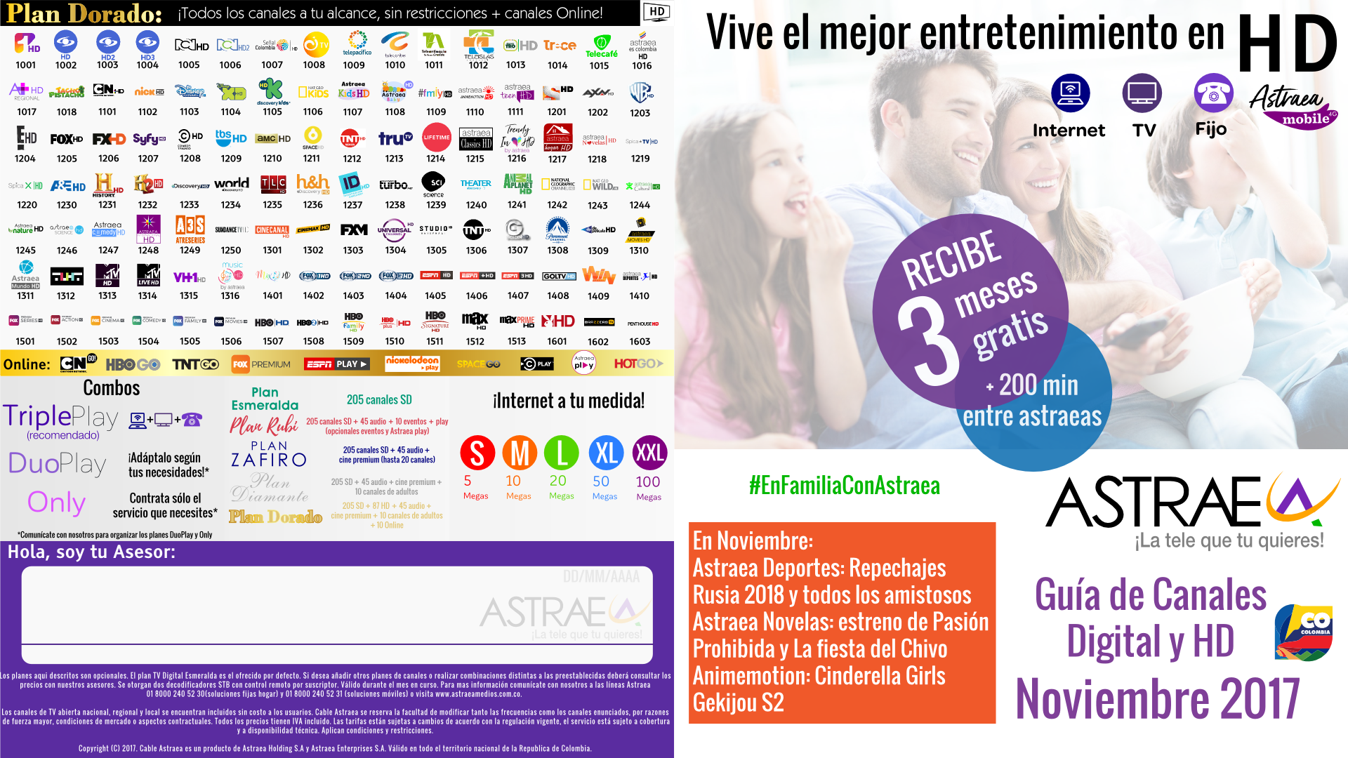 Sin otro particular, aquí las grillas de Astraea para Noviembre de 2017 para la TV Digital y HD