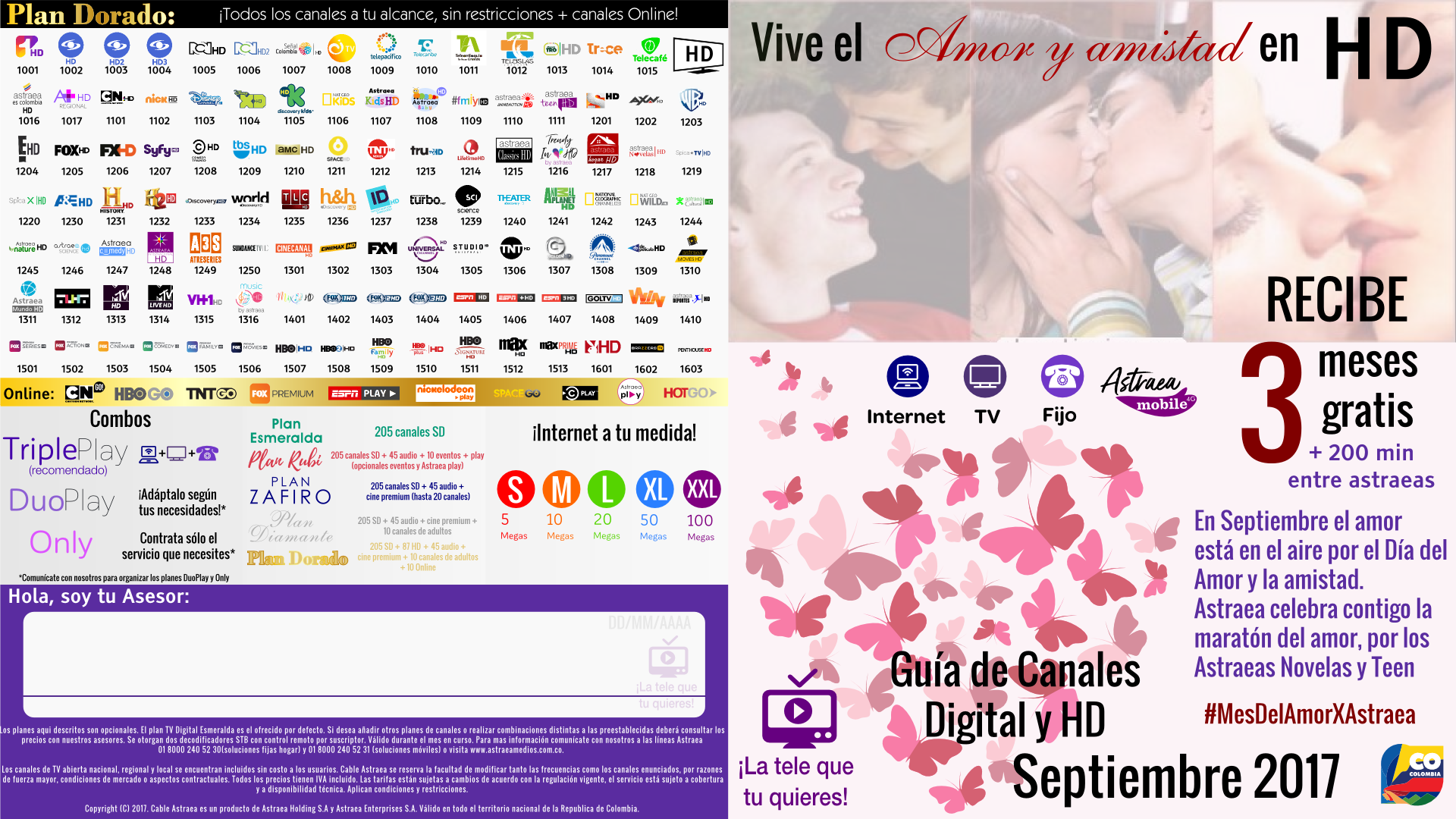 Sin otro particular, aquí las grillas de Astraea para Septiembre de 2017 para la TV Digital y HD