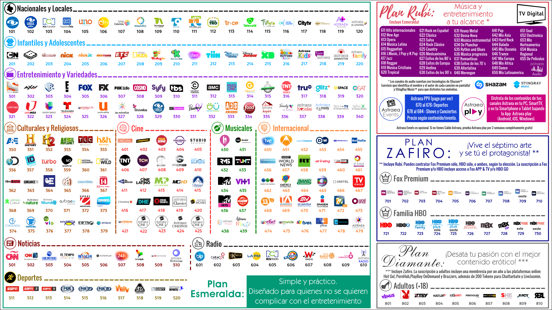 Todas la señaes Astraea cuentan con su canal espejo en versión alta definición (excepto Astraea Noticias)-