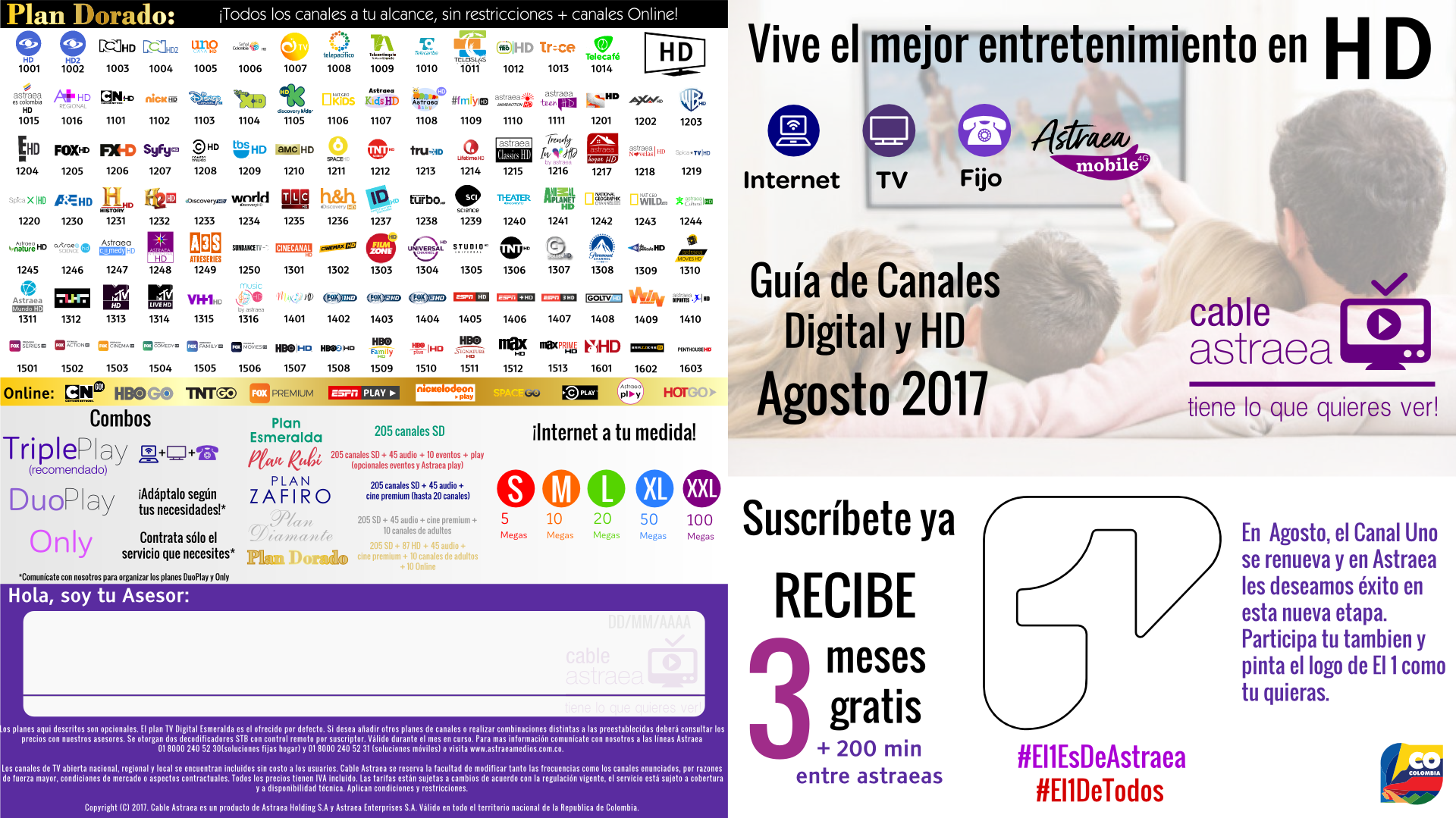 Sin otro particular, aquí las grillas de Agosto de 2017 para la TV Básica, Digital y HD