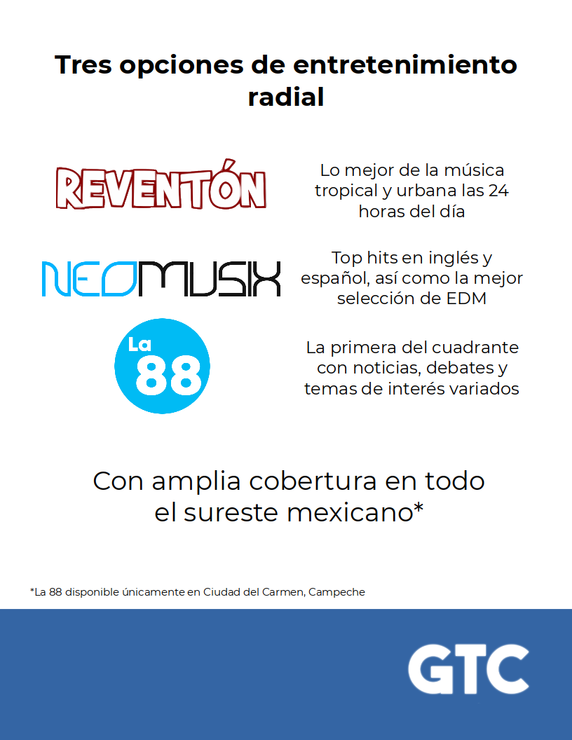 Se ha finalizado la recompra de XHTRS-FM 88.1 MHz (Ciudad del Carmen, Campeche) a LAMedia, por lo que desde este lunes, la estación volvió a formar parte de la división de radio de GTC Multimedios. A partir del lunes 7 de octubre realizará transmisiones oficialmente como “La 88, la radio de Carmen”, una estación con programación hablada y con un enfoque enteramente local. Durante las horas muertas (o en caso de no poder emitir algún programa hablado) se rellenará con lo mejor del género regional mexicano.