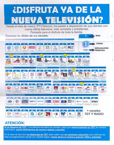Grilla del operador de canales digitales que esta en varias comunidades de España: