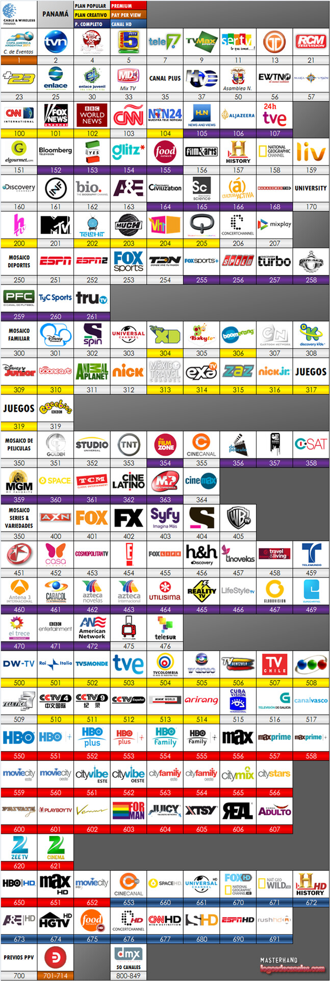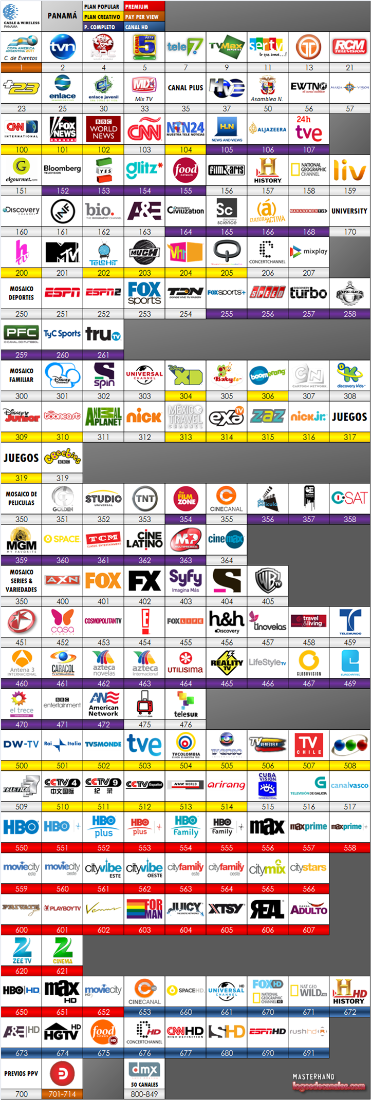 sale en la parte de abajo…y luego escojan a Panamá, puesto que el unico que sale allí es Cable Onda, y listo ya tienen la guia. Si les hace falta algo, yo complemento por texto la guia ya que la tengo anotada en una agenda con la lista completa. Por lo tanto vayan adelantando la grilla con este enlace que les doy.