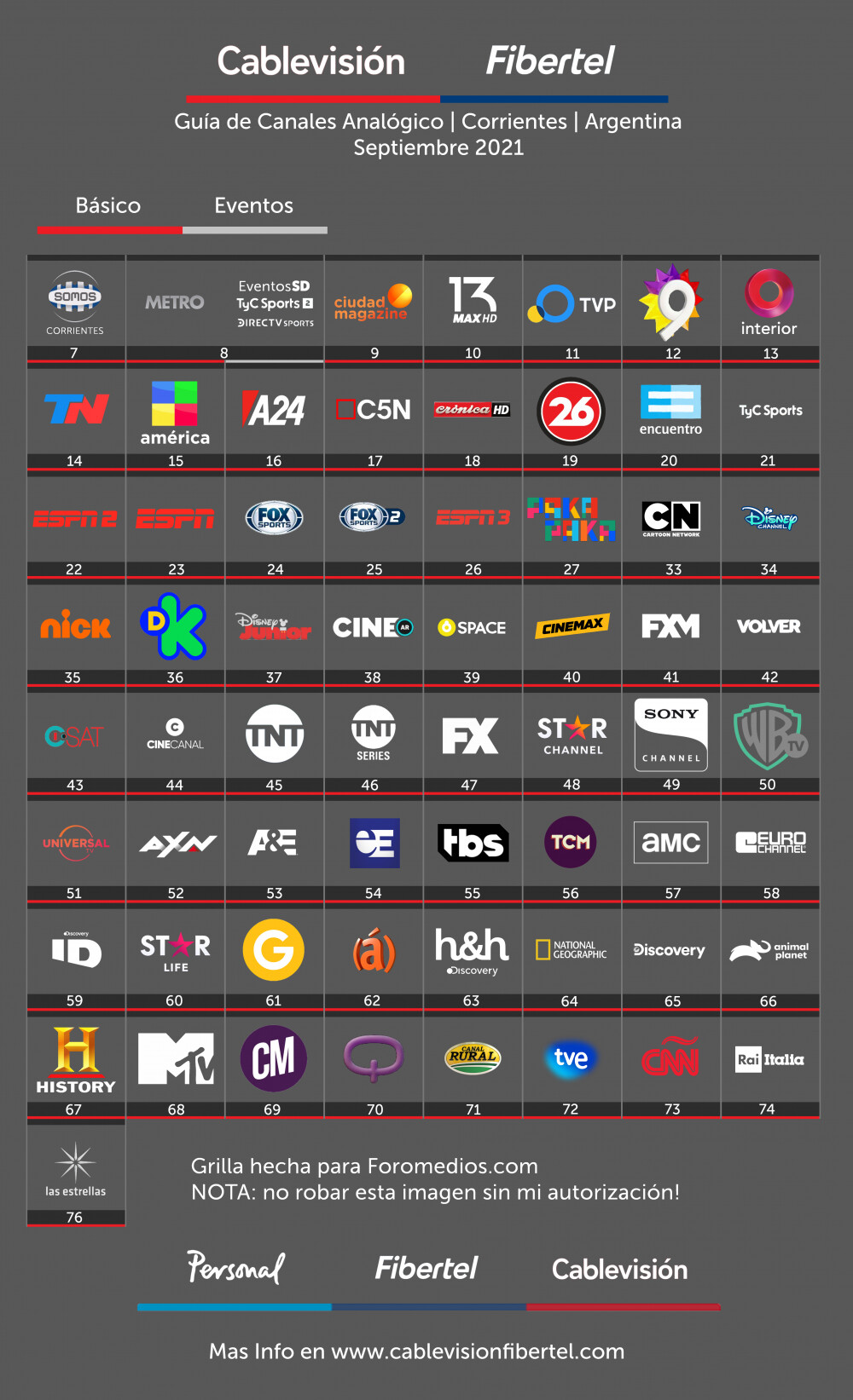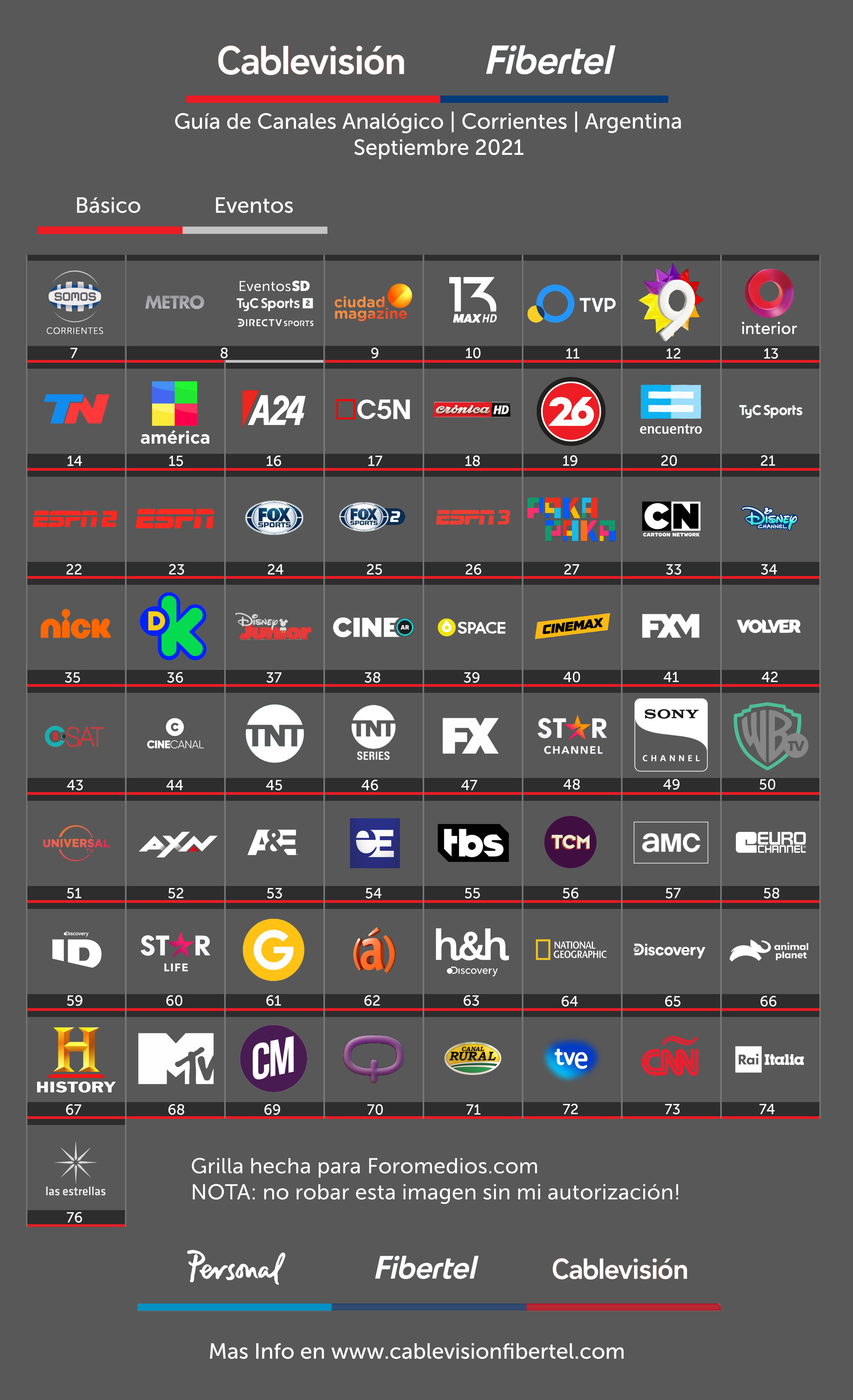 Guía de Canales Cablevisión AR Corrientes Capital | Analógico | Septiembre 2021