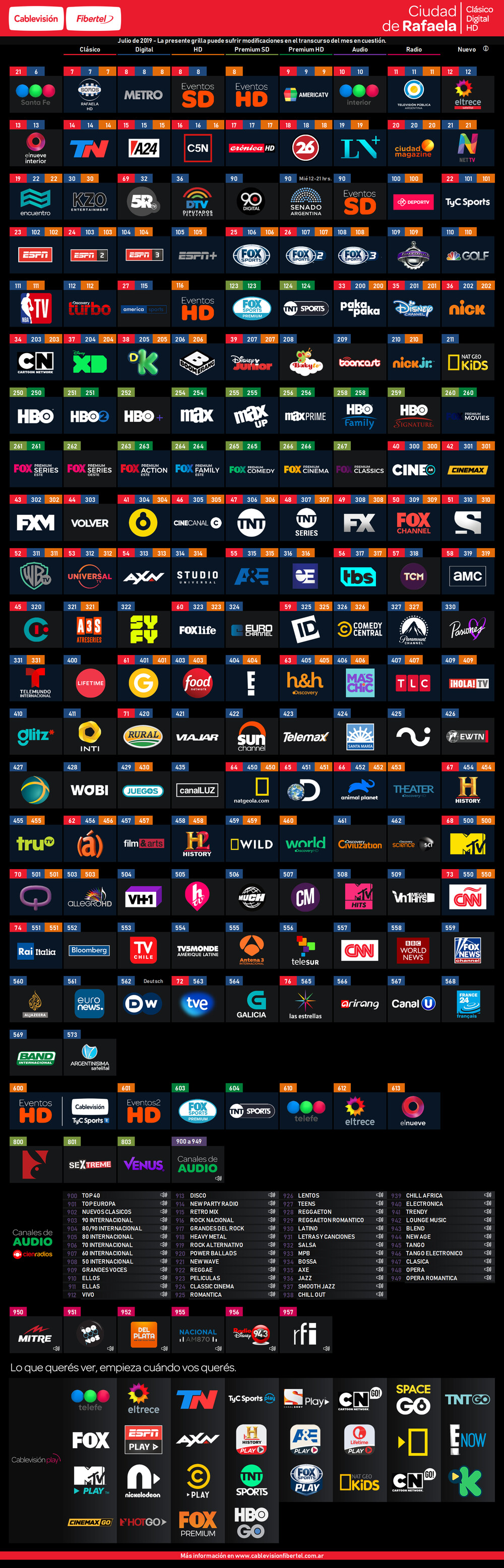 *Nota:* último mes de INTI Network (411) en las grillas digital, HD y Flow, ya que dejará de ser parte desde el próximo 1° de agosto.