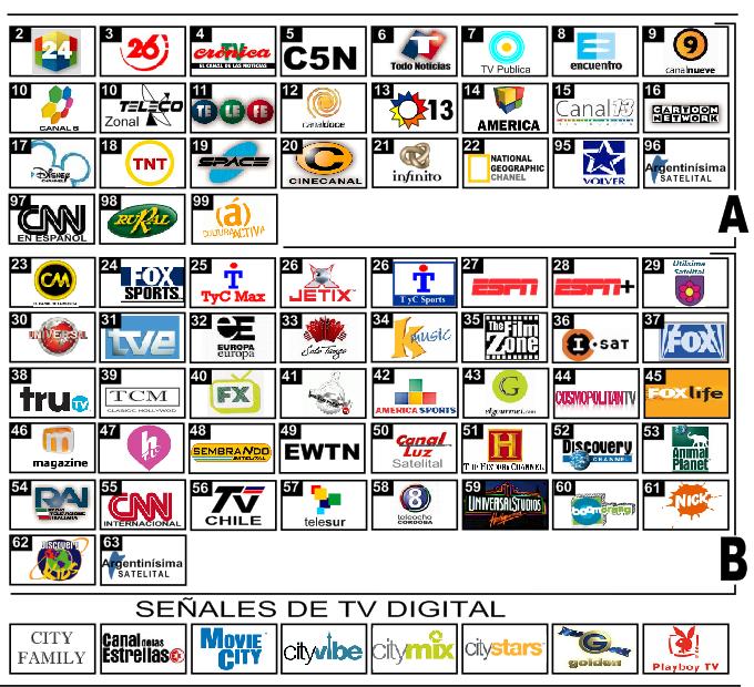 [color=black]Logos de[/color] [color=darkblue]C5N, TV Publica, NatGeo, K Music (?), TCM, EWTN, TV Chile, Telesur y City Family[/color] [color=black]recontra trucados por ellos, truchisimos!!![/color] [color=black]Encima ni se molestaron, los de C5N, EWTN y City Family son solo fuentes de letra, patético.[/color]