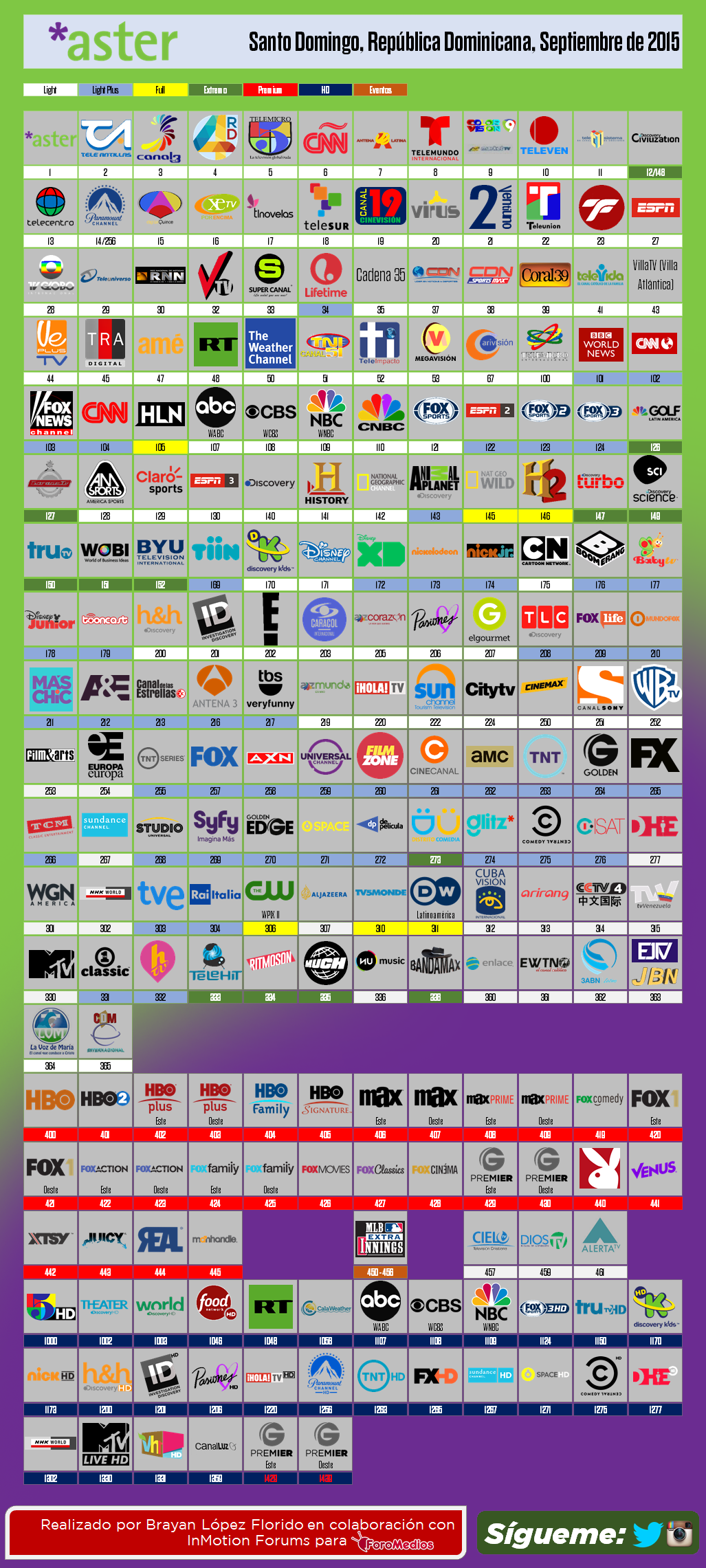 Creo que no hemos hablado del cableoperador del grupo Telemicro que estrenó hasta ahora canales HD y que viene de un periodo de supervivencia tras la caída de clientes. Ahora está invirtiendo en tecnología y adquisición de canales con algunas sorpresas y exclusividades con respecto a sus competidores en el país caribeño (en mi concepto) que tiene más canales abiertos de aire que cualquier otro. La hago en texto porque no encuentro los logos de algunos canales locales.