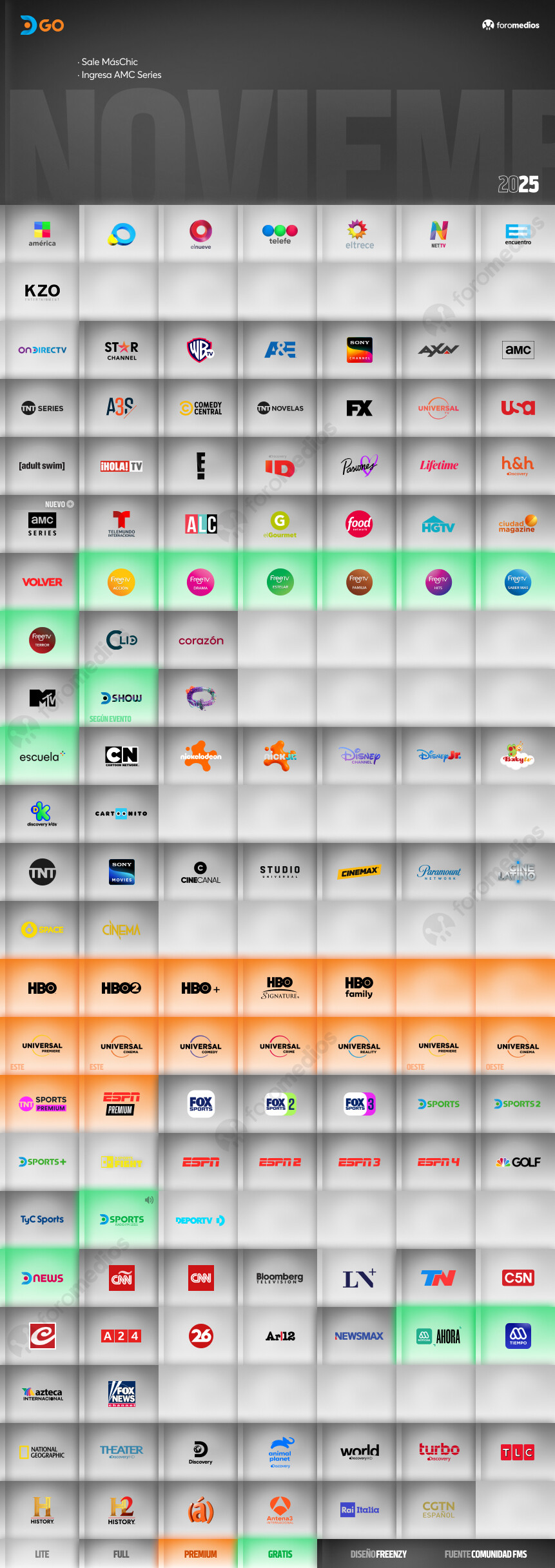 Guía de canales, DirecTV Argentina - Noviembre 2025
