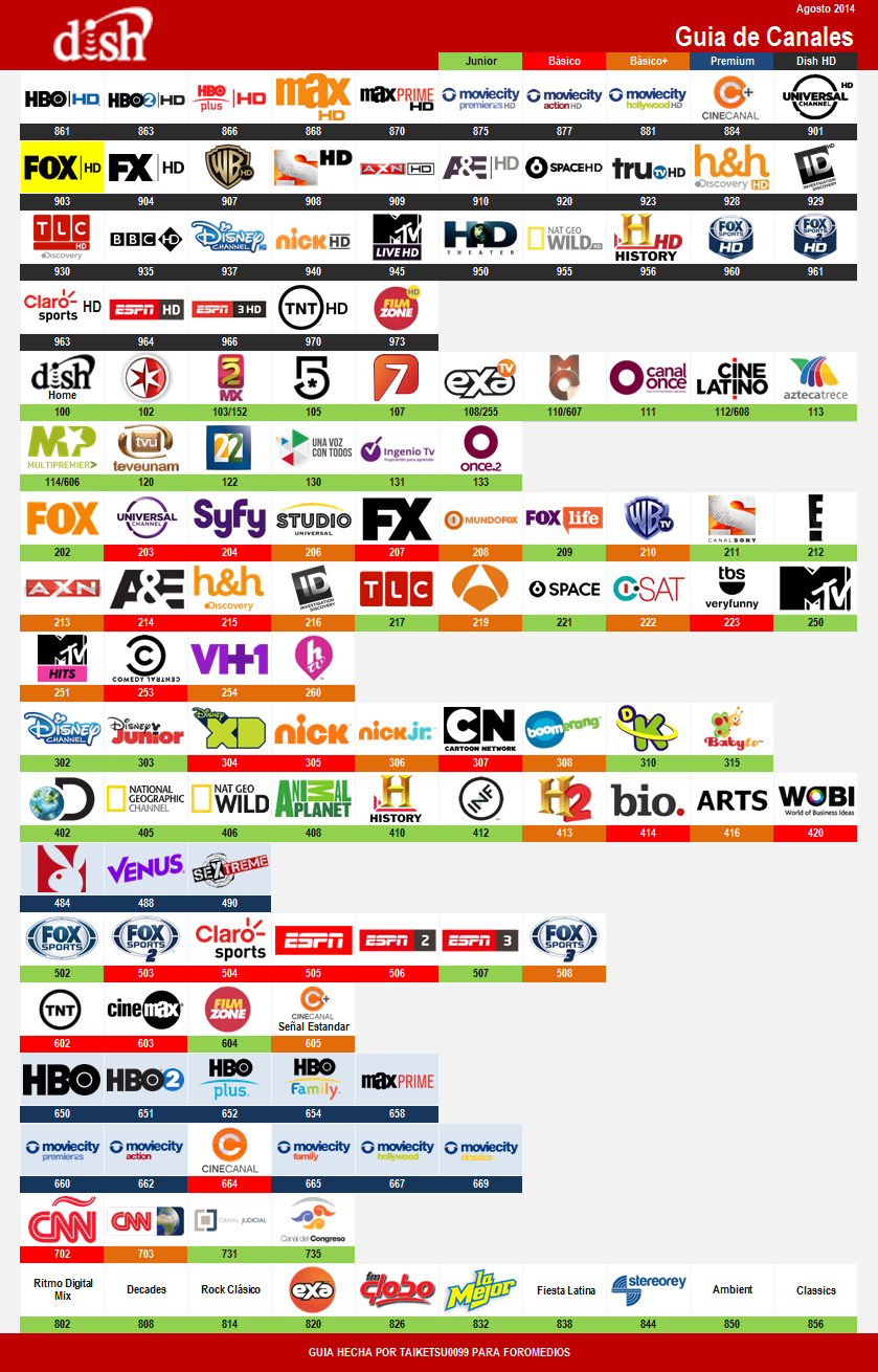 Desde el mes de Mayo no he subido guias de Dish por que no hubo cambios significativos entre dicho lapso de tiempo, por eso decidi publicar la guia para el mes de agosto, cuyos principales cambios destacan una nueva interfaz mas simple, quitando los duplexs, centrando los canales de HBO, Movie City y Adultos en la categoria de premium. Sin más que perder les dejo la guia.