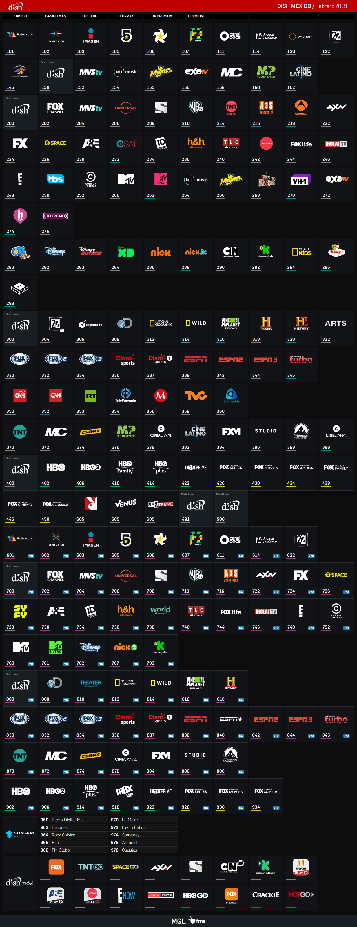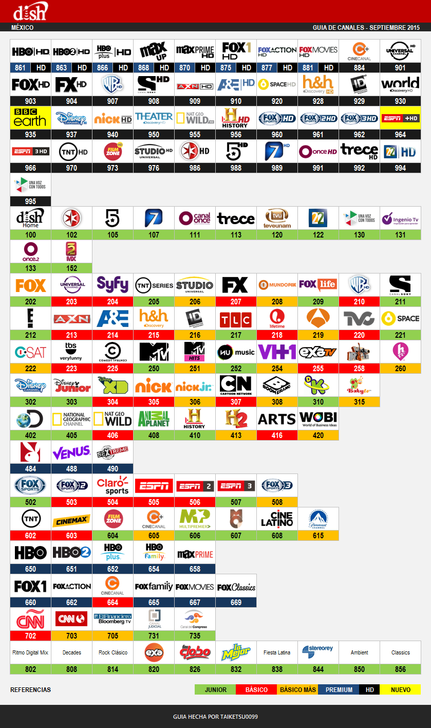 Después de un tiempo sin publicaciones de este cableoperador, acá les muestro la grilla actualizada de Dish México.