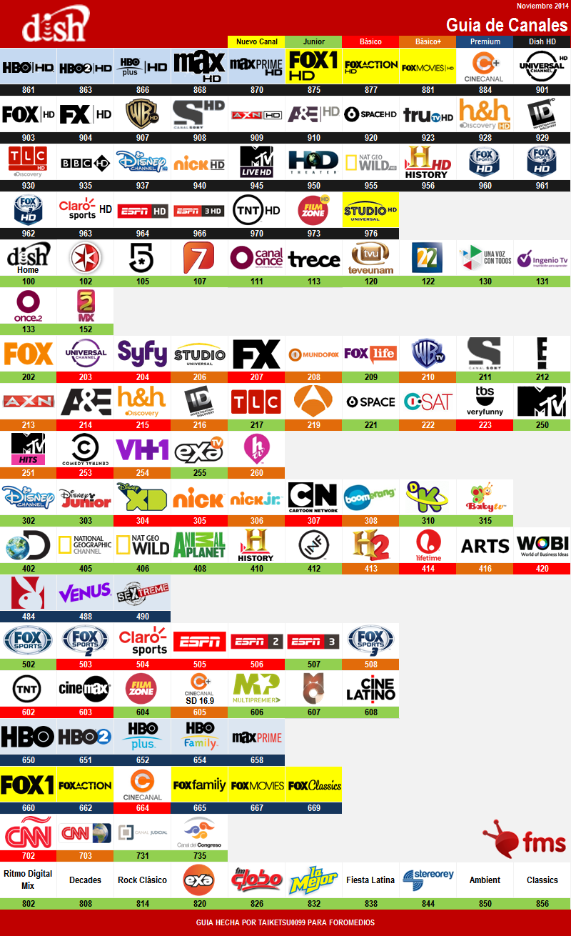 Aqui les dejo la guia de canales de Dish para México, con una novedad frecuente en este mes. Solo resta que ingrese AMC.