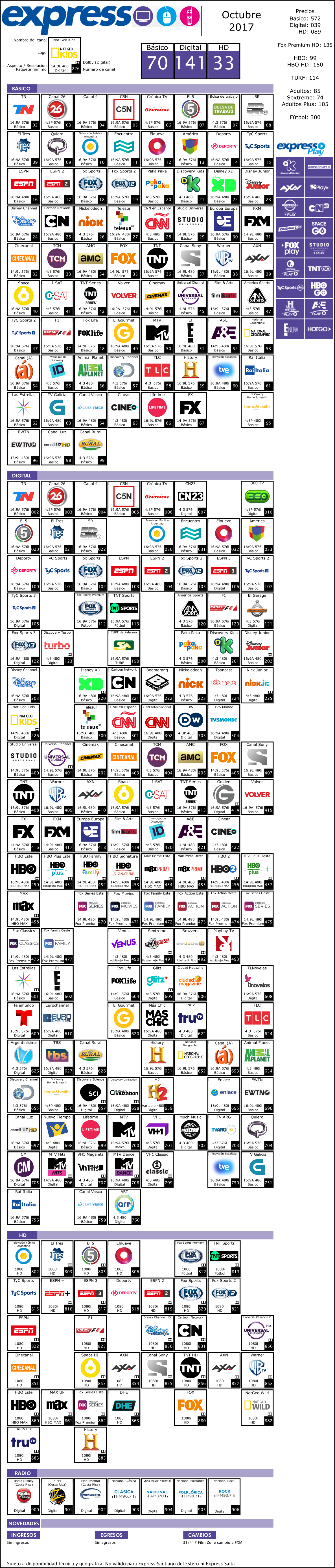 Sin TyC 3 ni Deportv HD ni las radios, al menos en mi deco