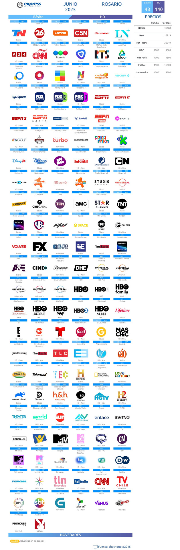 Guía de canales Express Telecomunicaciones - Junio 2025