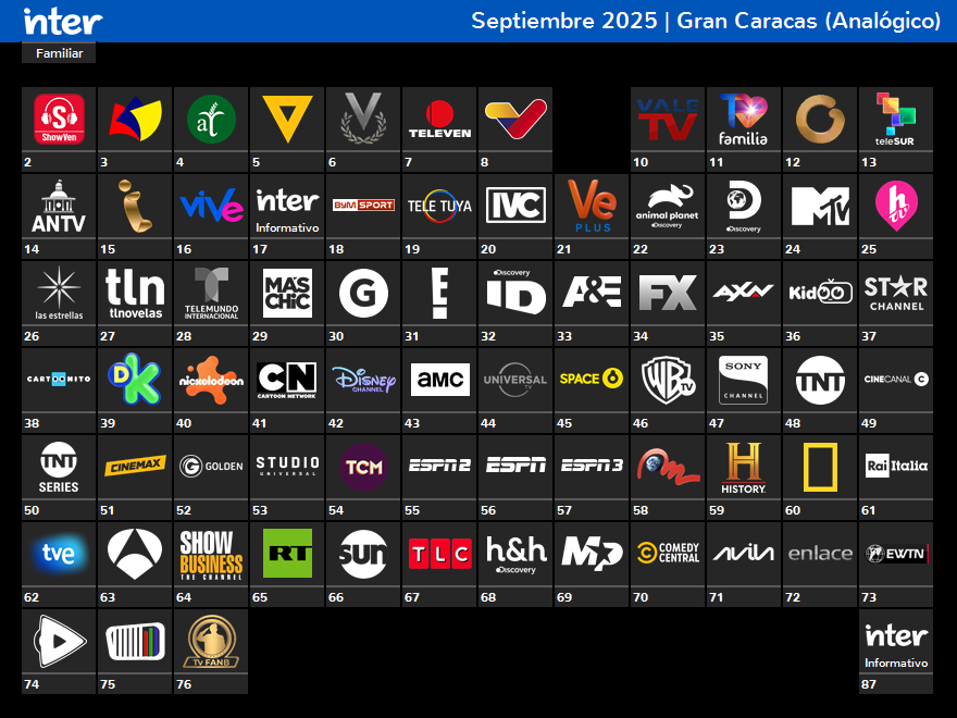 Todos los canales afectados están en Fibra (ya la denominación “Fibrahogar” no la usan comercialmente como solían hacer al principio) y sobre todo en InterGo a excepción del feed nacional de TeleSUR (lo únicos canales básicos que “faltan” en la plaforma son “irónicamente”, algunos canales gubernamentales).