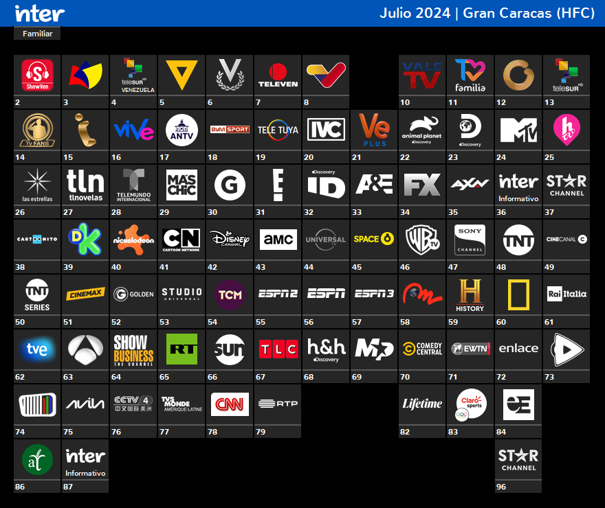 - Canal Guía/Promociones de FibraHogar (87) pero sin audio.