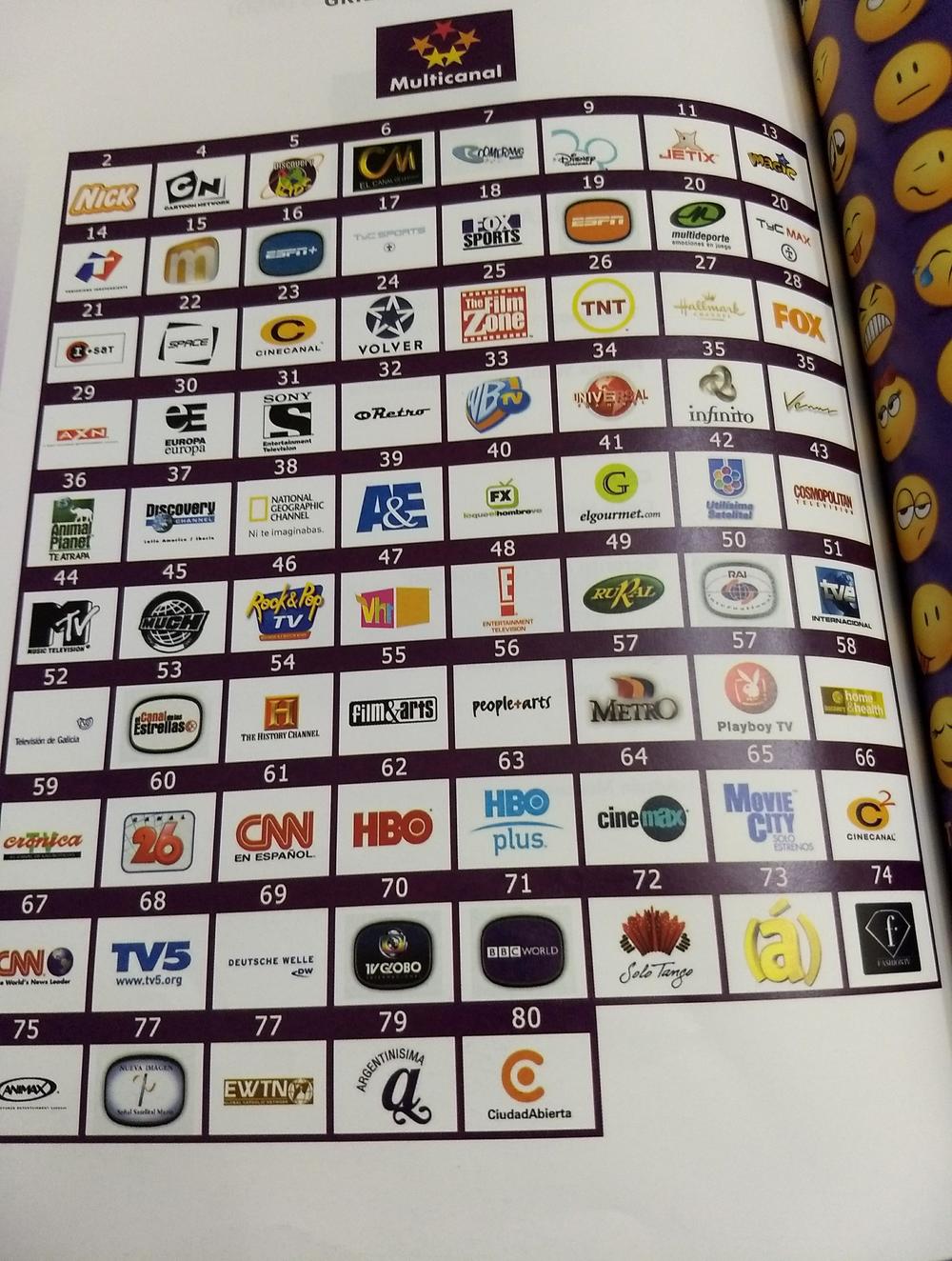 Se nota que no es una grilla hecha por Multicanal, ya que varios logos (los ESPN, Canal de las estrellas, RAI, TV Globo, BBC) usaron las “pantallas” típicas de las Guías de canales de Cablevisión entre 2001 y 2007