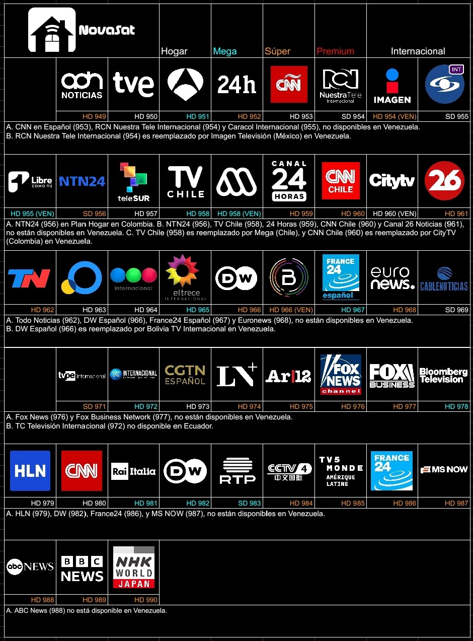 Saludos a todos. En esta ocasión, quiero presentarles, en el ocaso de la televisión ficticia (a comparación de sus años dorados), un proyecto sumamente interesante. Se trata de NovaSat, un servicio de televisión satelital que opera en Venezuela, Colombia y Ecuador en esta primera etapa. La misma nace en el lejano 2020, con aquel proyecto conocido Americable (el cual fue conocido por su desorden, inestabilidad y polémicas generadas en el foro y en el topic en su momento), y que a día de hoy ha resurgido, luego de diversos meses de preparación, escogencia de planes y canales, ingreso y salidas de señales, y próximos proyectos en el corto plazo. Próximamente, se abrirá el topic oficial de información de NovaSat. Por último, quiero acotar que estos primeros meses serán de prueba, y próximamente se incorporaran nuevos elementos para enriquecer más la grilla de programación.