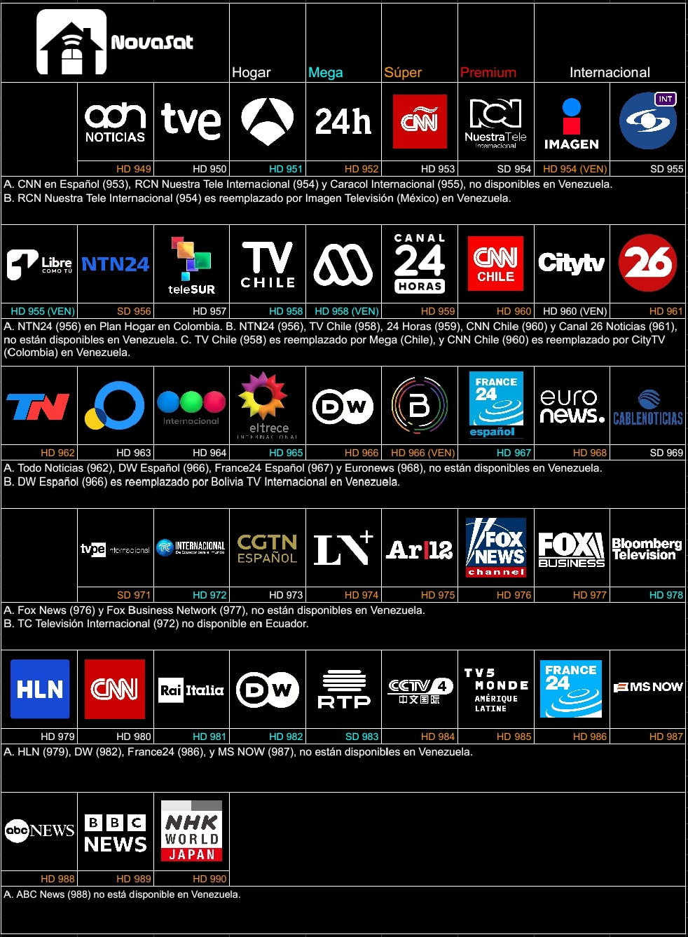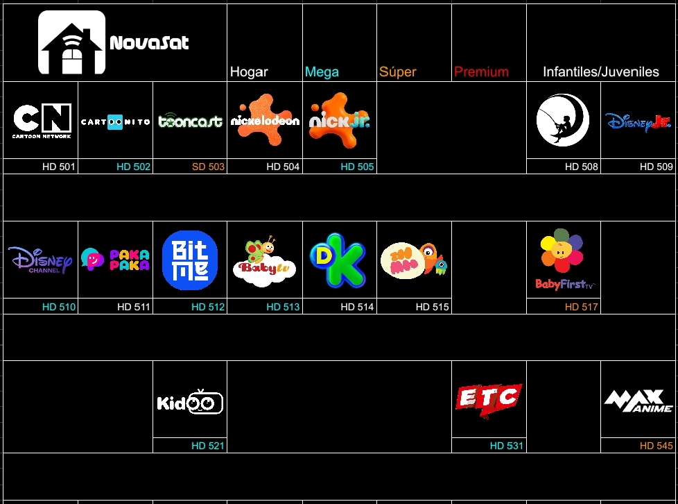 Aunque sea un universo alterno, la televisión ficticia (o al menos lo que queda de ella), fomenta la creatividad de los usuarios. Varios de los canales que propones están fuera del aire, incluso desde hace varios años, y volverlo a colocar estando cerrados, merma la creatividad del operador (e incluso caer en cuestiones legales por uso indebido de imagen). Te invito a que crees tu propia línea original de canales, si cumplen con los estándares serán tomados en cuenta.