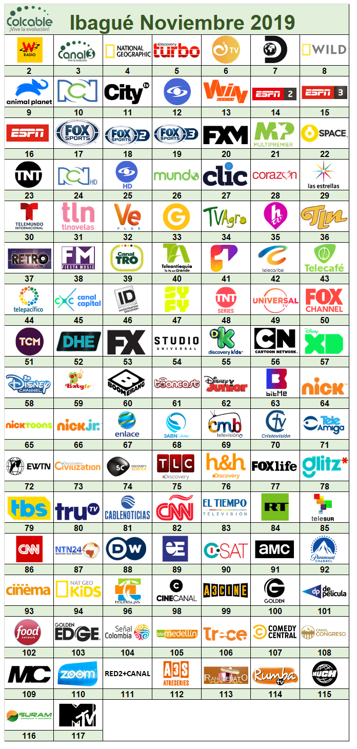 Aquí les dejo la grilla de canales de colcable en la ciudad de Bogotá del mes de noviembre 2019 .