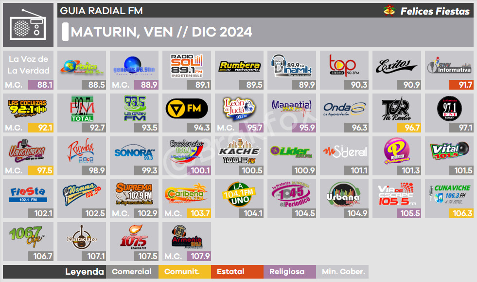 Saludos a todos. He leído que algunos usuarios han preguntado en cómo se encuentra el dial FM en la capital monaguense. Desde 2026 no se han sucedido cambios significativos, excepto el cambio de frecuencia de VN Radio al 107.9. En pocos días, publicaré la actualización completa.