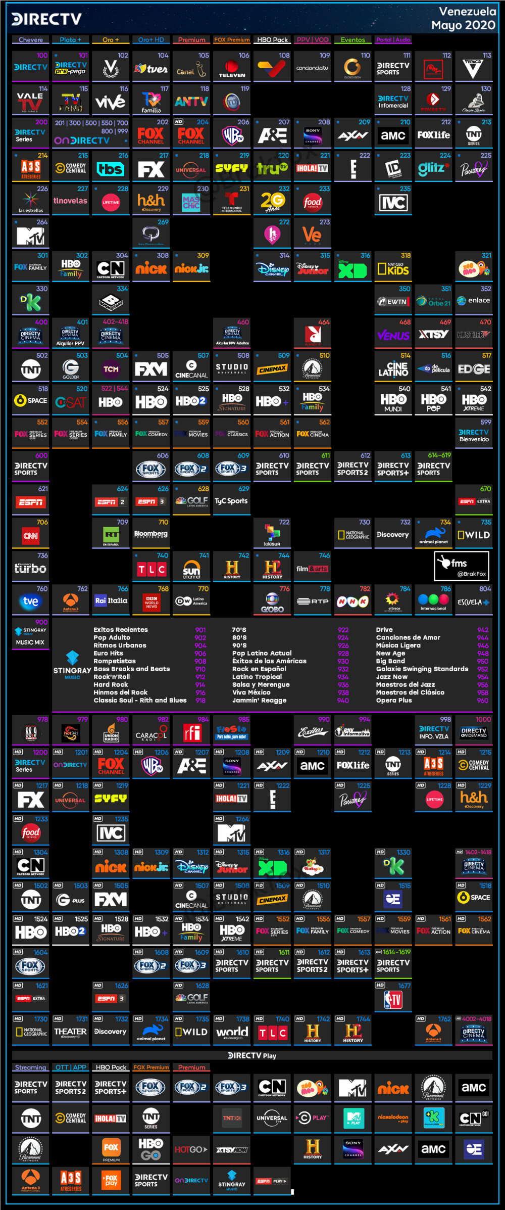 Salen todos los canales.Un aplauso para todos los que se encargaron de mantener actualizadas las grillas de este operador de tv paga. Fuerza a los que se quedan sin trabajo tras este sorpresivo cierre y a toda Venezuela que se queda con una fuente de información y entretención menos.
