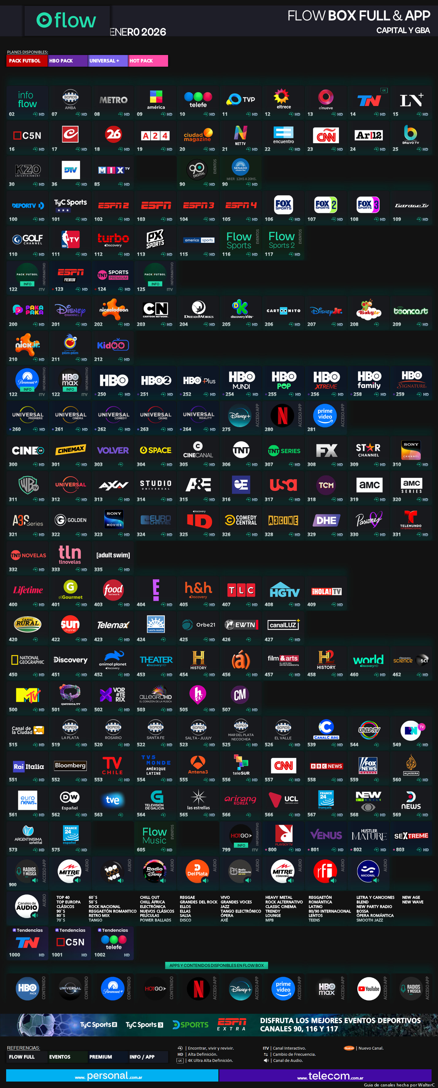- Se lanza #Tendencias y se incorpora TN Tendencias HD (1000), C5N Tendencias HD (1001) y Telefe Tendencias HD (1002). Solo disponible vía web.