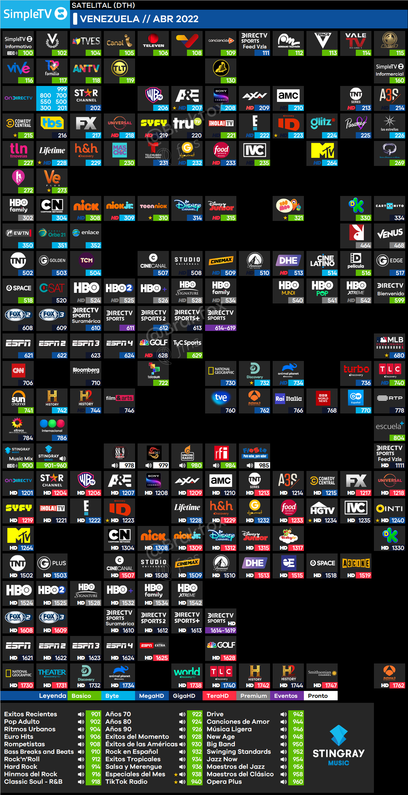 Primera Grilla SimpleTV del 2022. Con novedades desde la descontinuación de los canales básicos temáticos de Disney Media Networks Latin America, destacando el descenso de ciertos canales al plan Básico y Byte como compensación de lo primero y el ingreso de INTI Network HD, HGTV HD, Teen Nick. Además se mantiene vigente Stingray Music con ligeros renombres en sus dos canales de audio tras la salida de la misma de DirecTV America Latina y por último correcciones en la presente grilla (Gracias a un amigo suscriptor del servicio y de los usuarios de FMS).