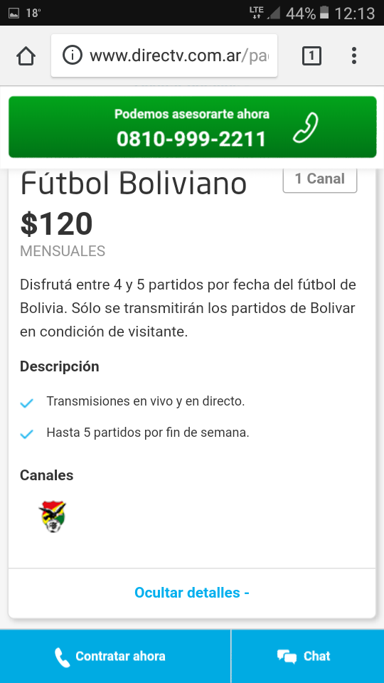 Se agregó en Directv Argentina el 635 como Fútbol Profesional Boliviano desde el 6 de agosto (aproximadamente)