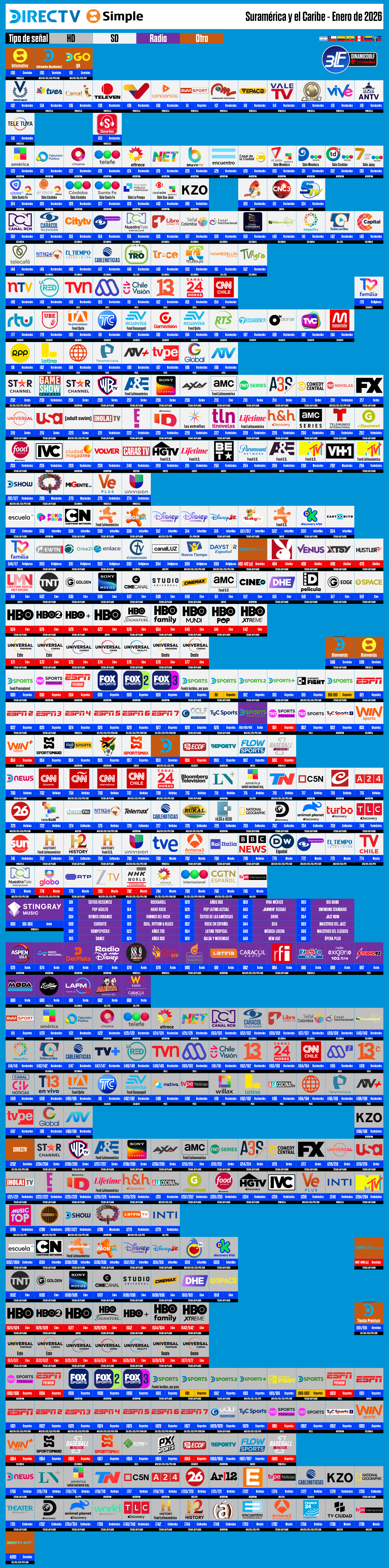 Guías DirecTV Suramérica y Caribe Anglo + SimpleTV Venezuela - Enero de 2026