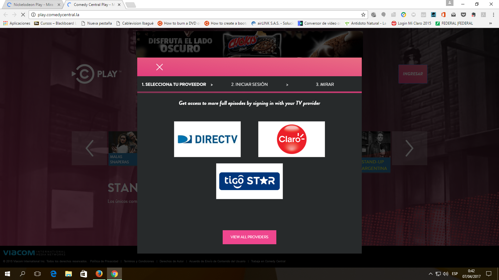 UNE tiene habilitado la plataforma OTT de Viacom MTV Play, NICK Play y Comedy Central Play ademas una sorpresa cuando aparece los logos de los cableoperadores no aparece el de UNE ahora el de TIGO STAR sera que se a proxima el cambio de nombre por parte de millicom